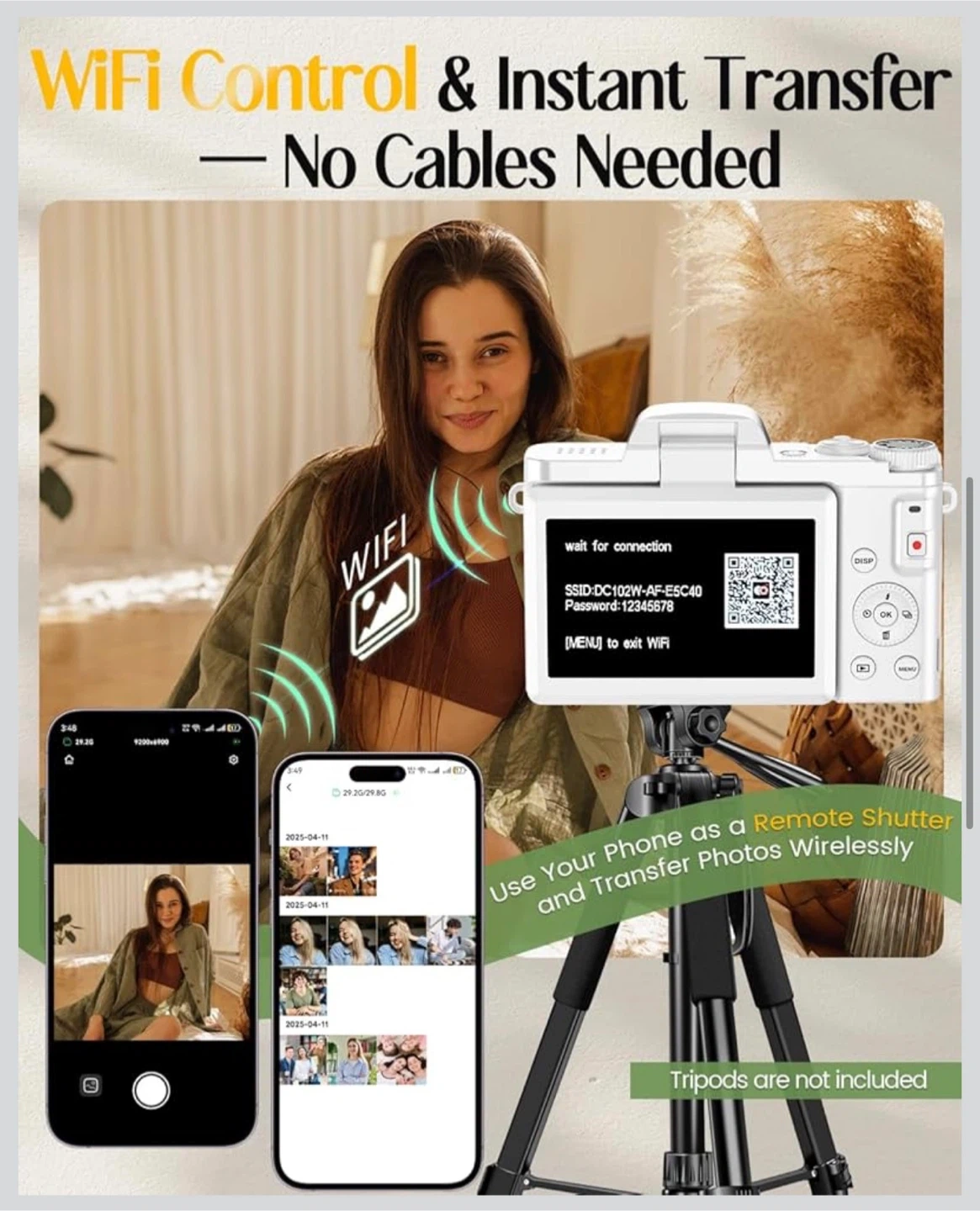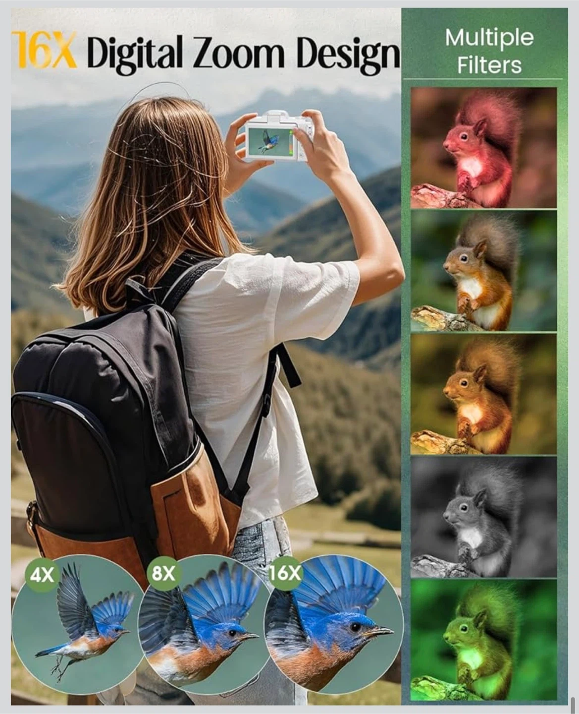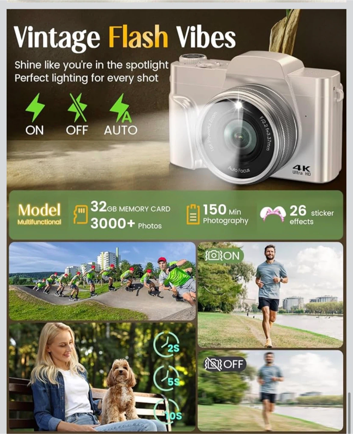 4K Digital Camera for Photography with WiFi,64MP Autofocus Vlogging Camera for YouTube,3'' 180° Flip Screen Compact Travel Camera for Teens with 32GB SD Card,16X Zoom,Anti-Shake,2 Batteries(White)