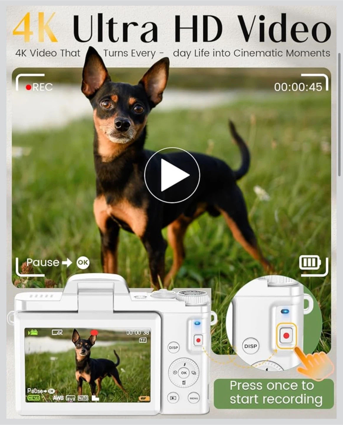 4K Ultra HD Digital Camera - White