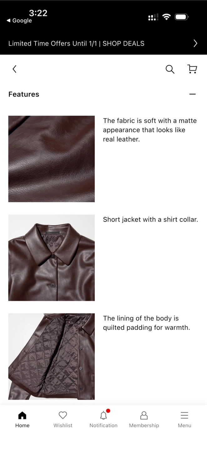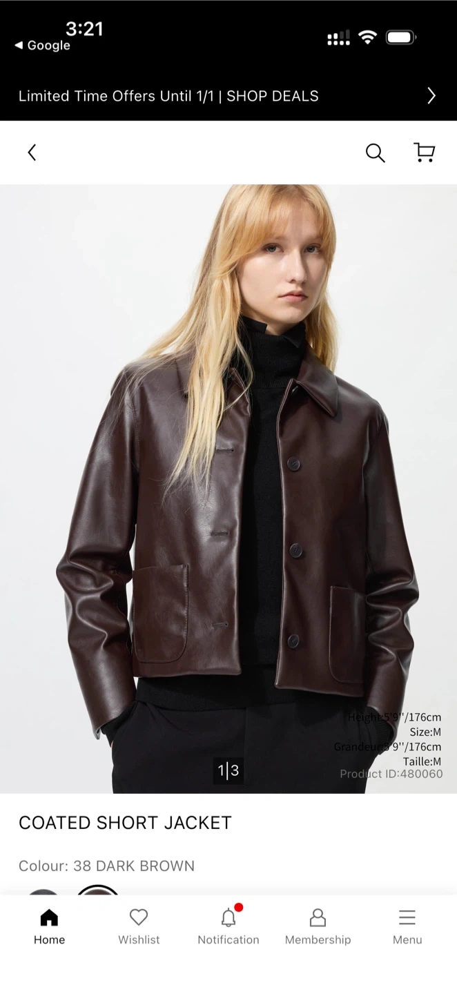 Selling a Uniqlo coated short jacket in dark brown, size medium.