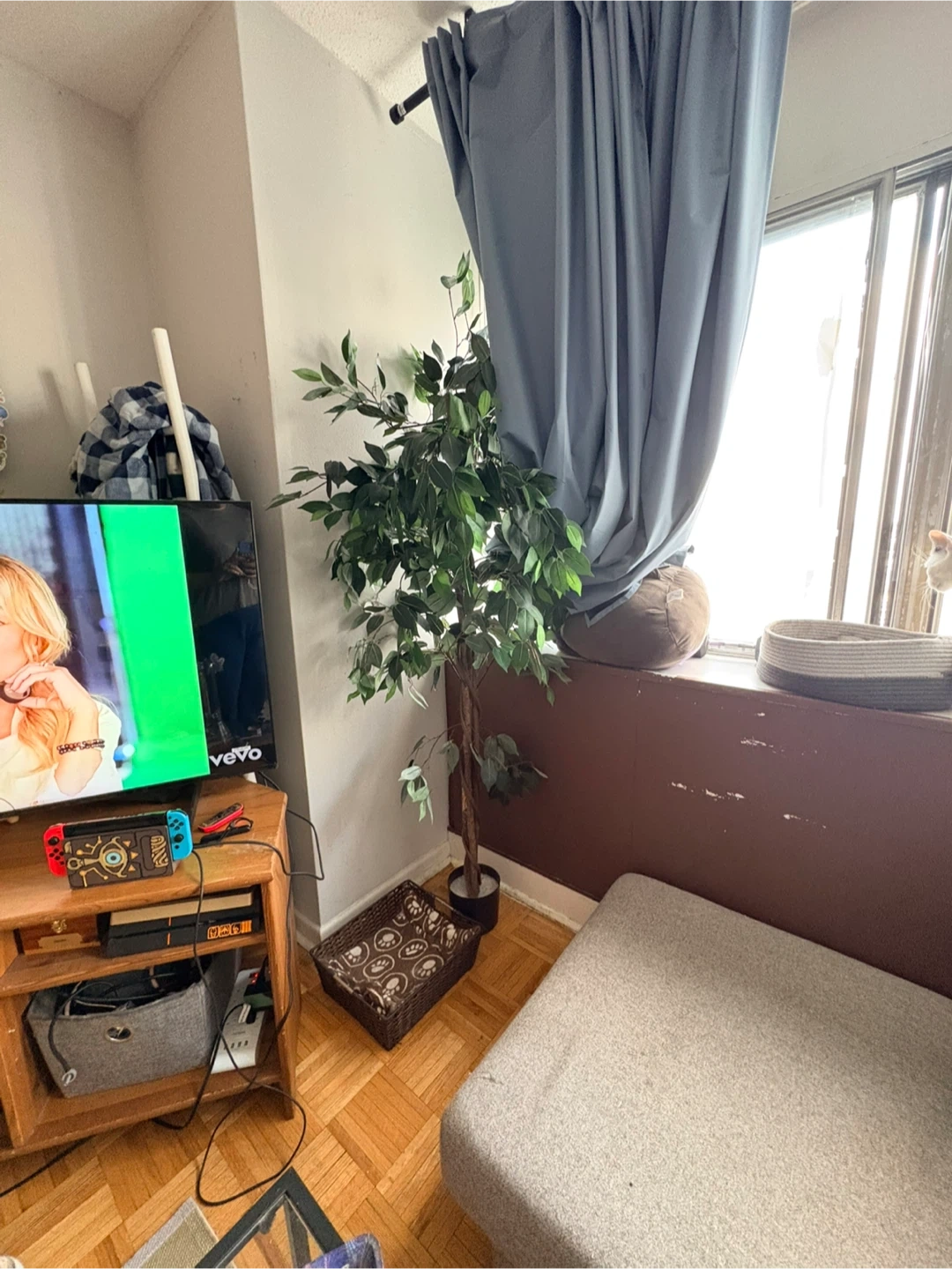 Looking to add a touch of greenery to your space? This faux ficus tree is a great way to brighten up any room. It's in good condition and ready to be a part of your home decor