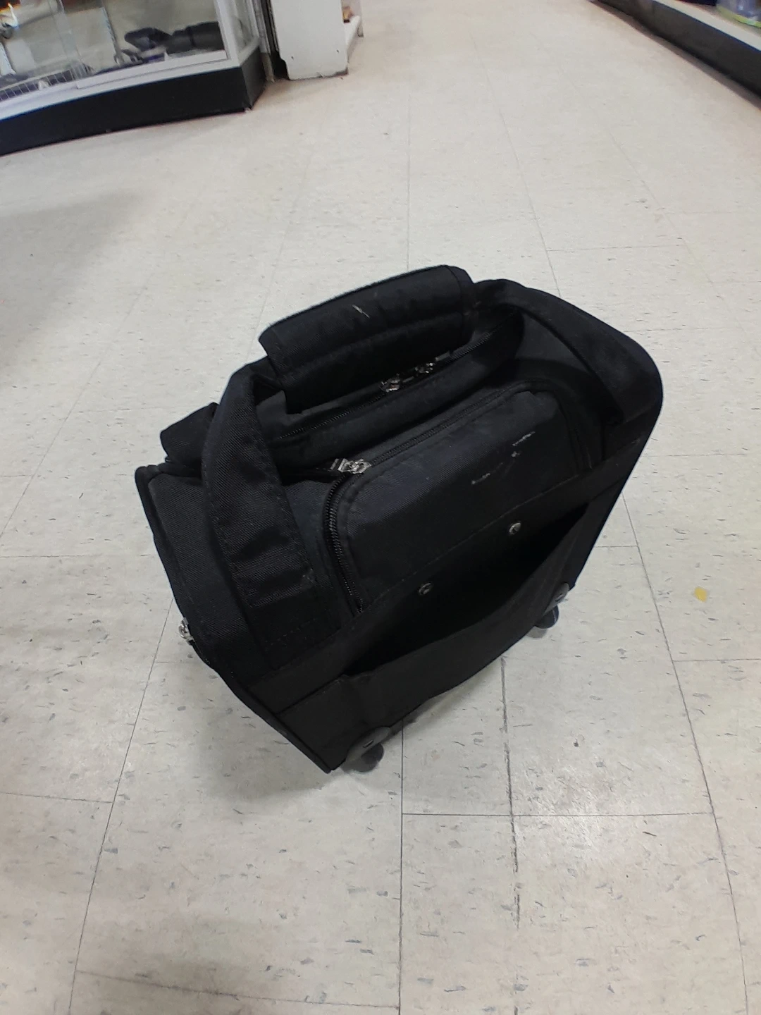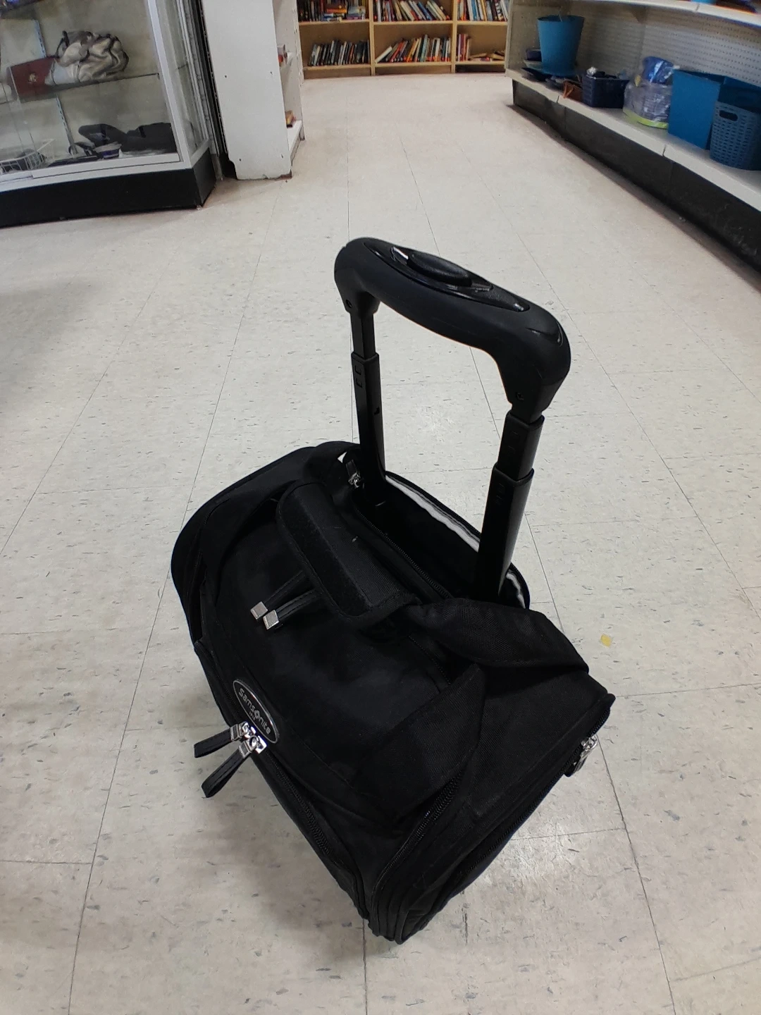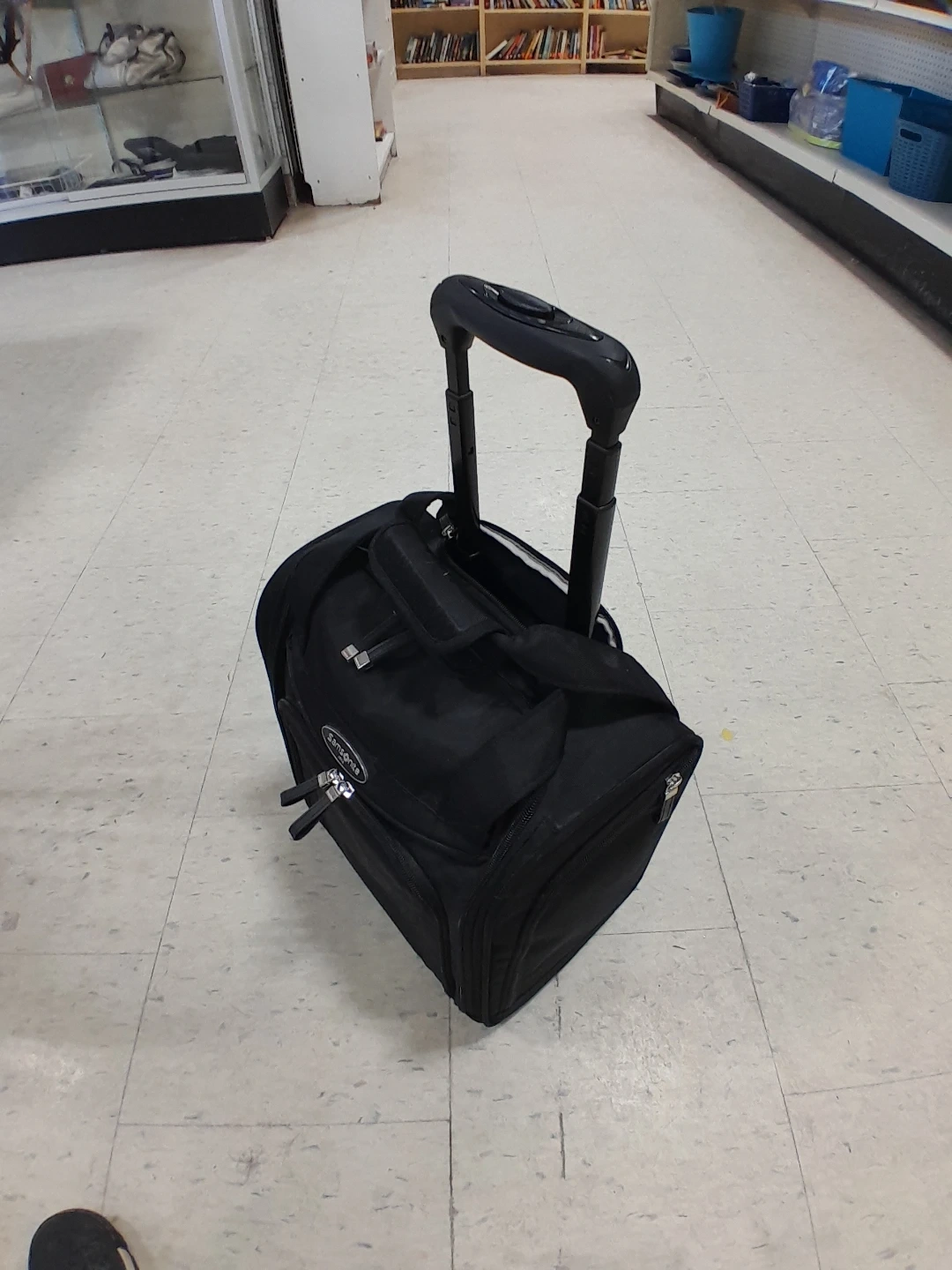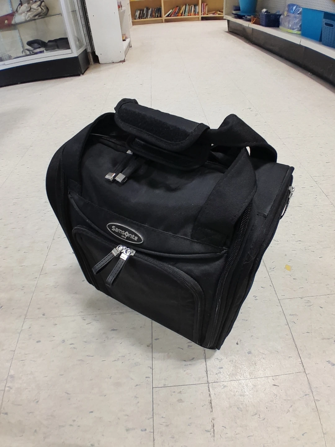 Samsonite rolling carry-on bag in black. It's in great condition and ready for your next trip portable business man style