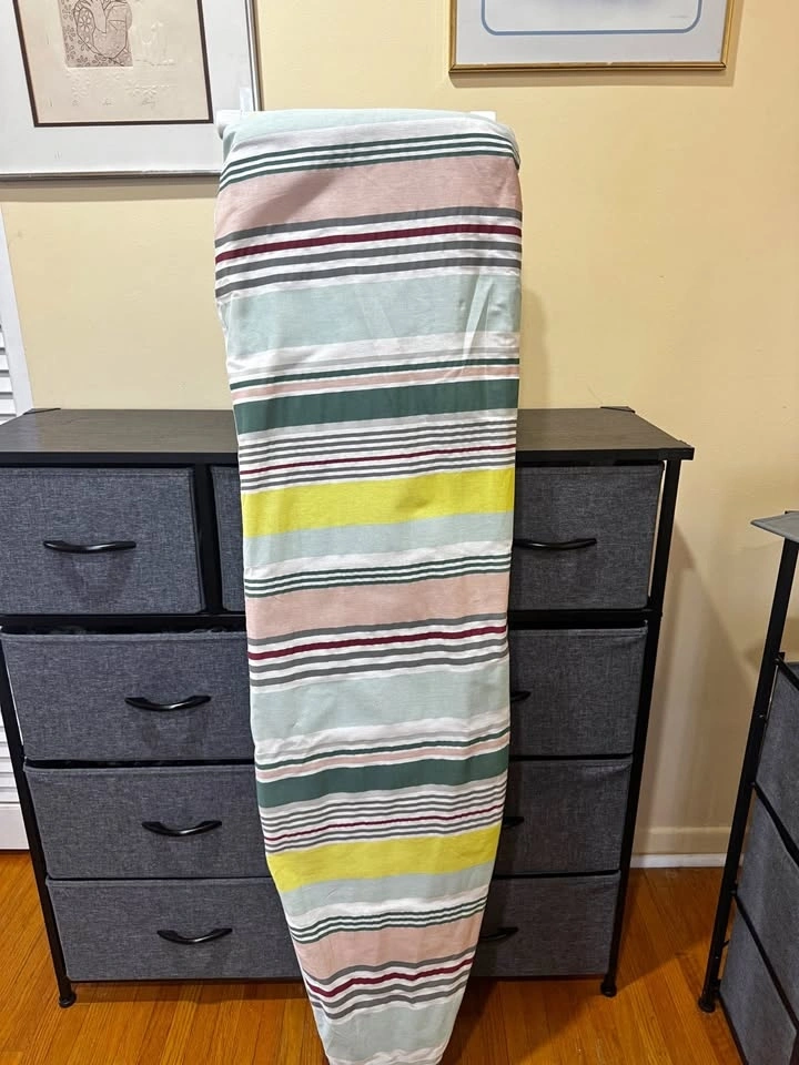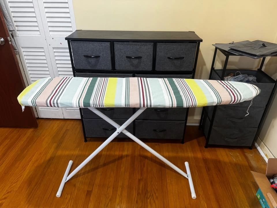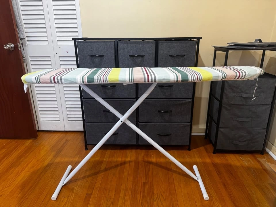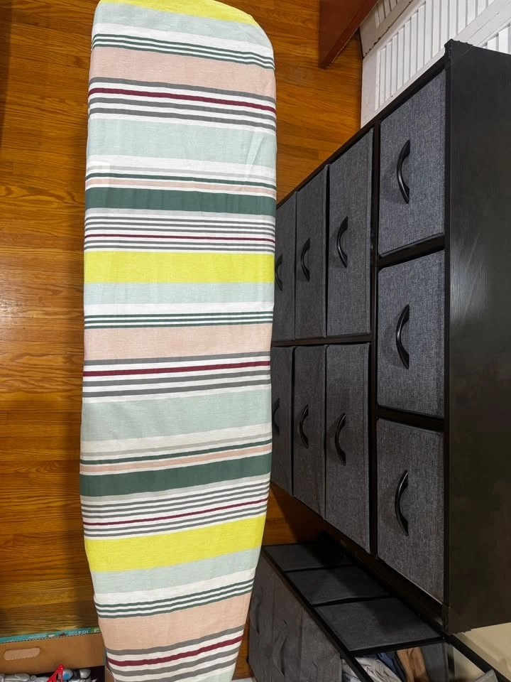 The type A T-Leg Ironing Board provides a spacious surface for effortless ironing. It features a cotton cover that ensures both safety for your clothes and a stylish look with its attractive print. Fully collapsible, this ironing board is easy to store behind a door or in a closet when not in use. This type A ironing board can be conveniently paired with other items in the type A collection to complete your setup.
