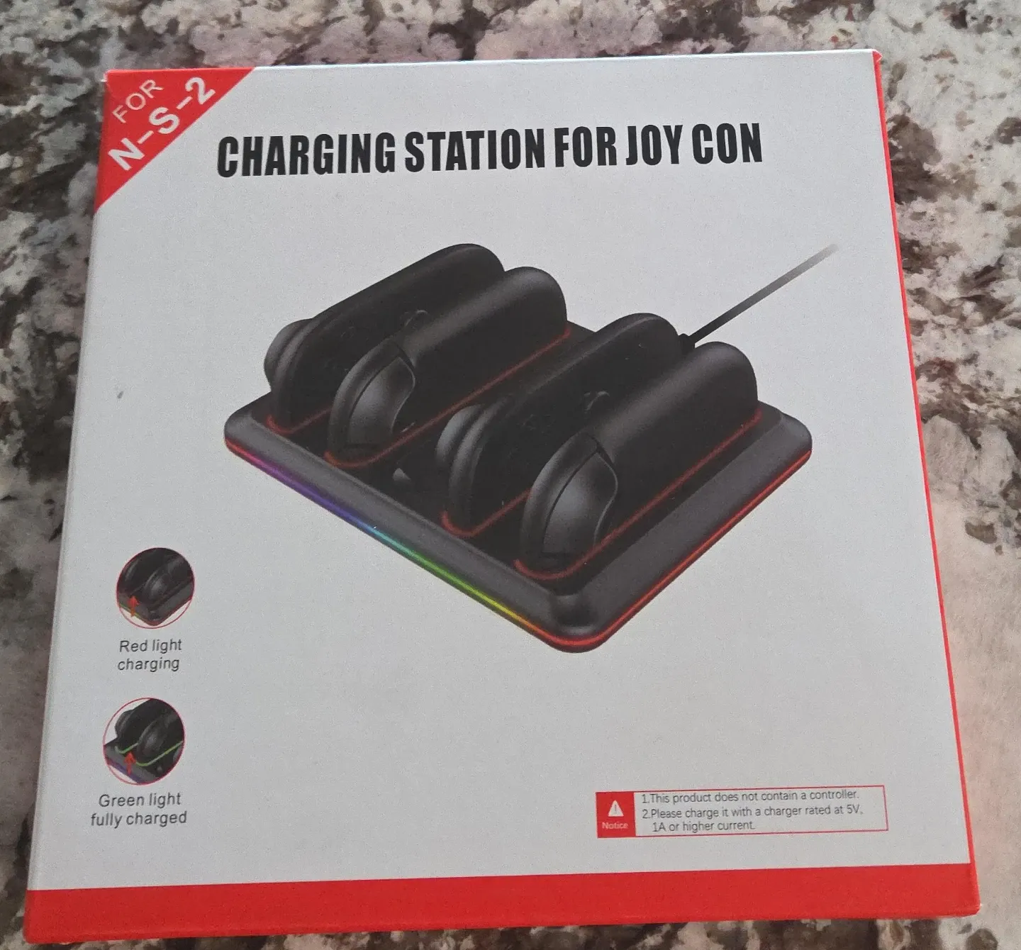 Selling a charging station for Joy-Cons, model N-S-2! It indicates charging with a red light and fully charged with a green light. Please note that this product does not contain a controller and should be charged with a 5V, 1A or higher current charger