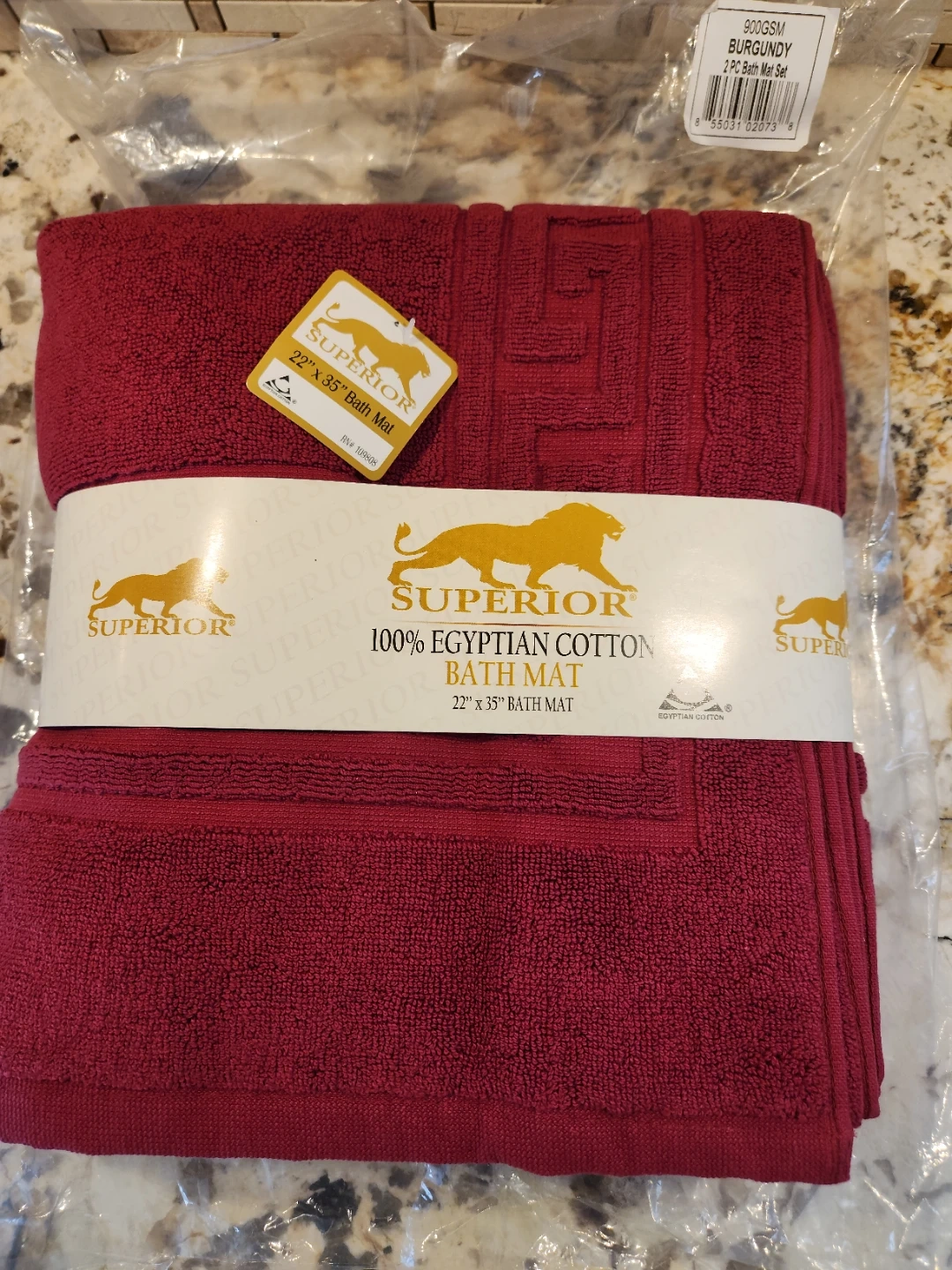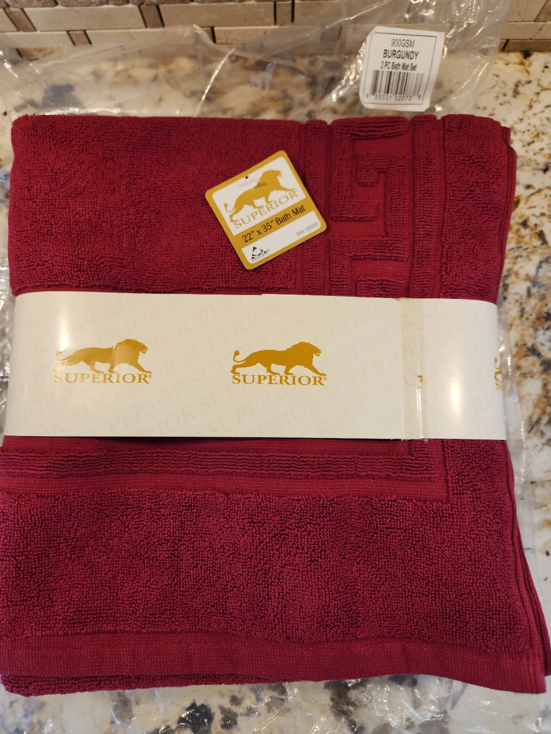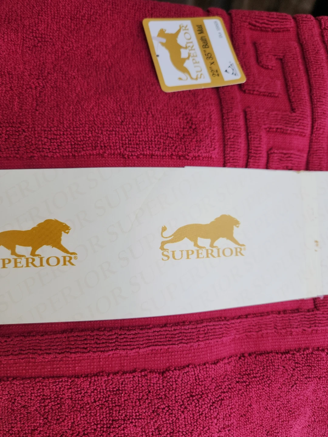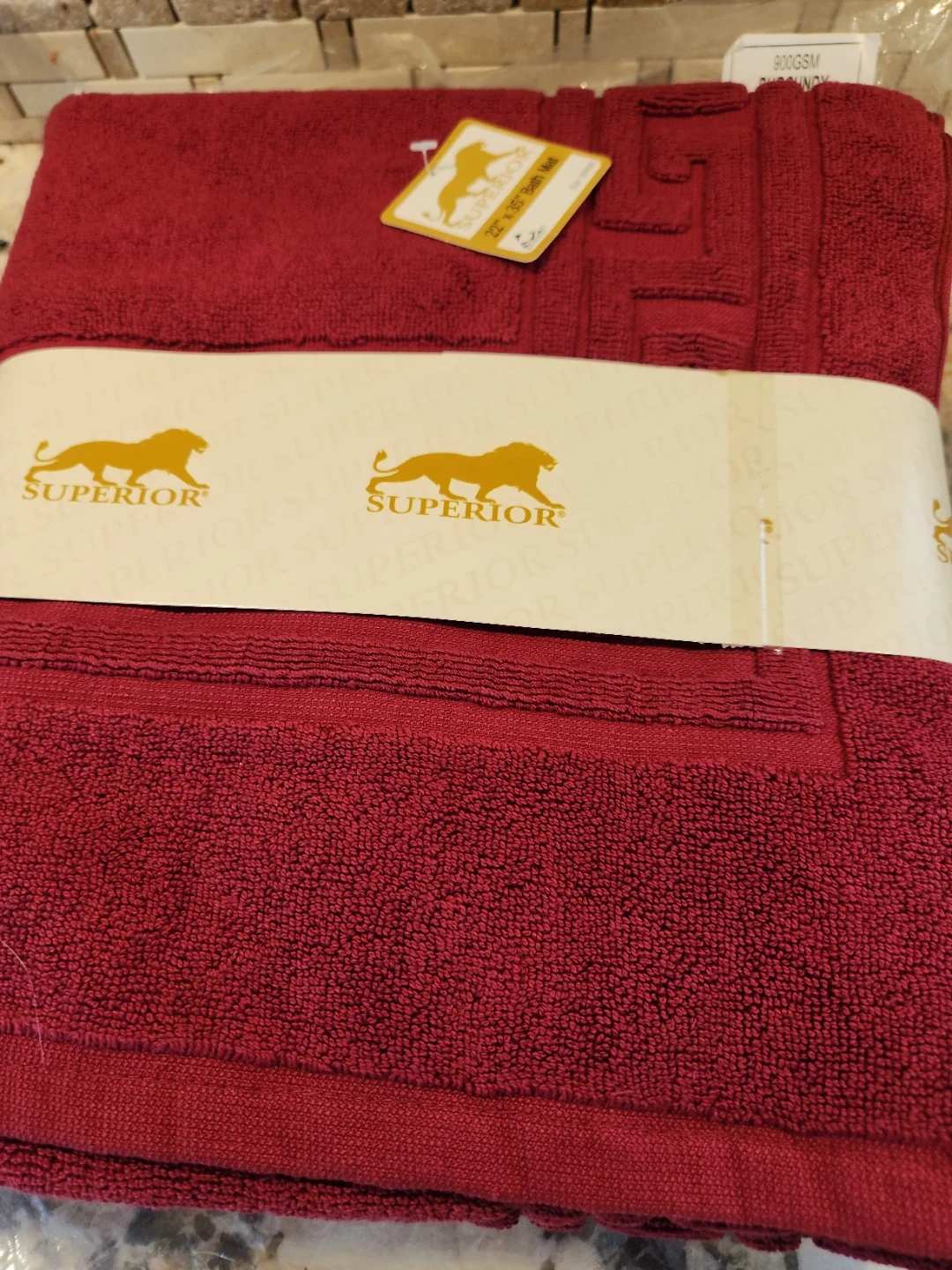 I'm selling a brand new Superior bath Towels/mats in burgundy! It's 22" x 35" and made of 100% Egyptian cotton 900 GSM ( Very thick) !!! Rare to find.