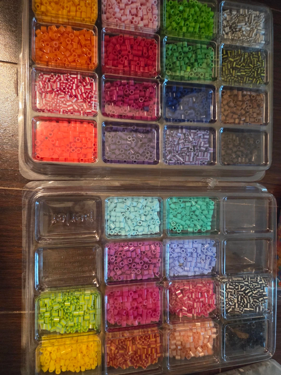 Selling a large set of Perler beads! This set includes a variety of colours in storage containers, as well as a pegboard for creating your designs. Perfect for crafting and fun projects!