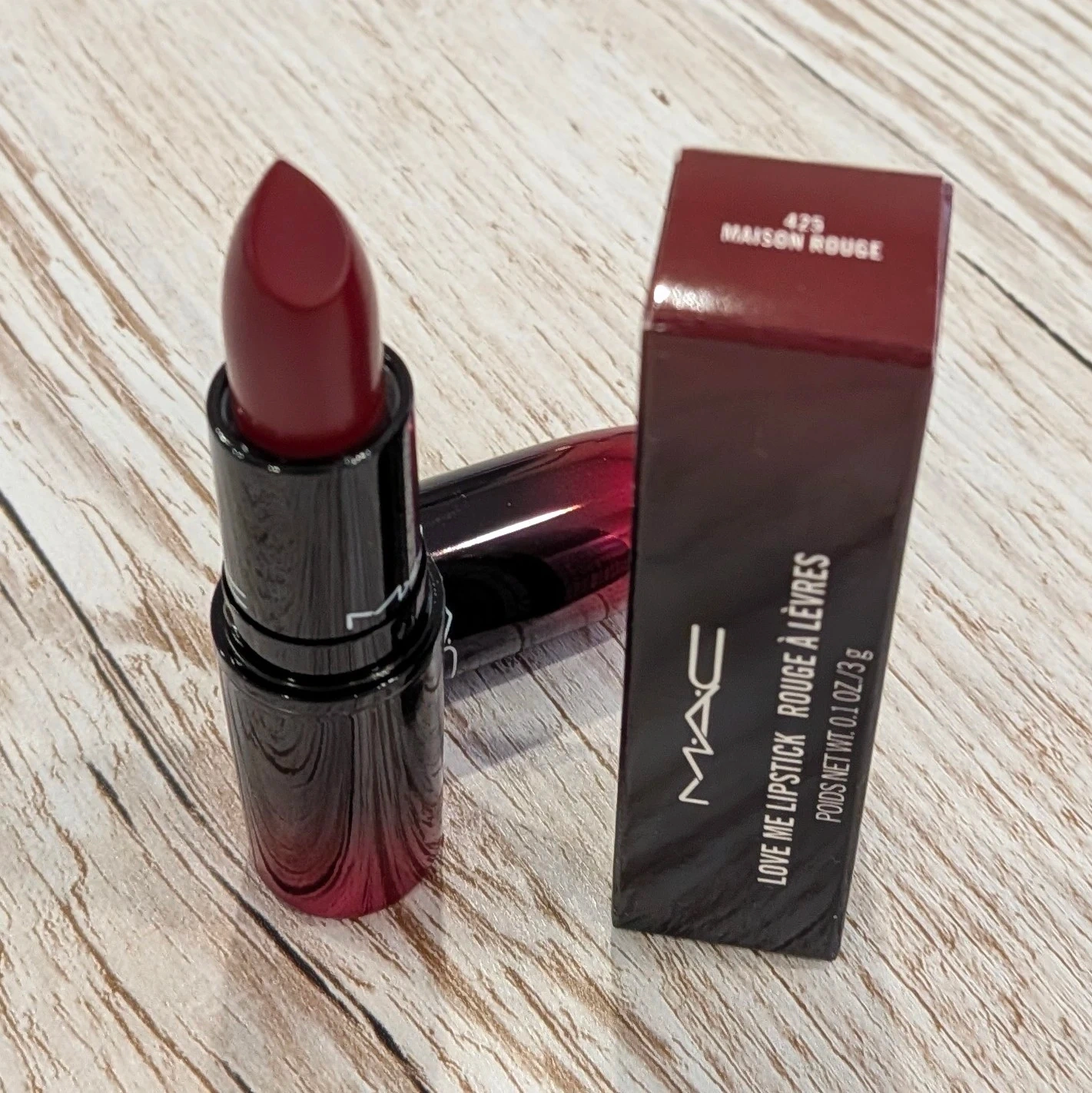 MAC Love Me Lipstick in the shade Maison Rouge. It's a beautiful colour! The lipstick is in brabd new condition and comes with its original box!
