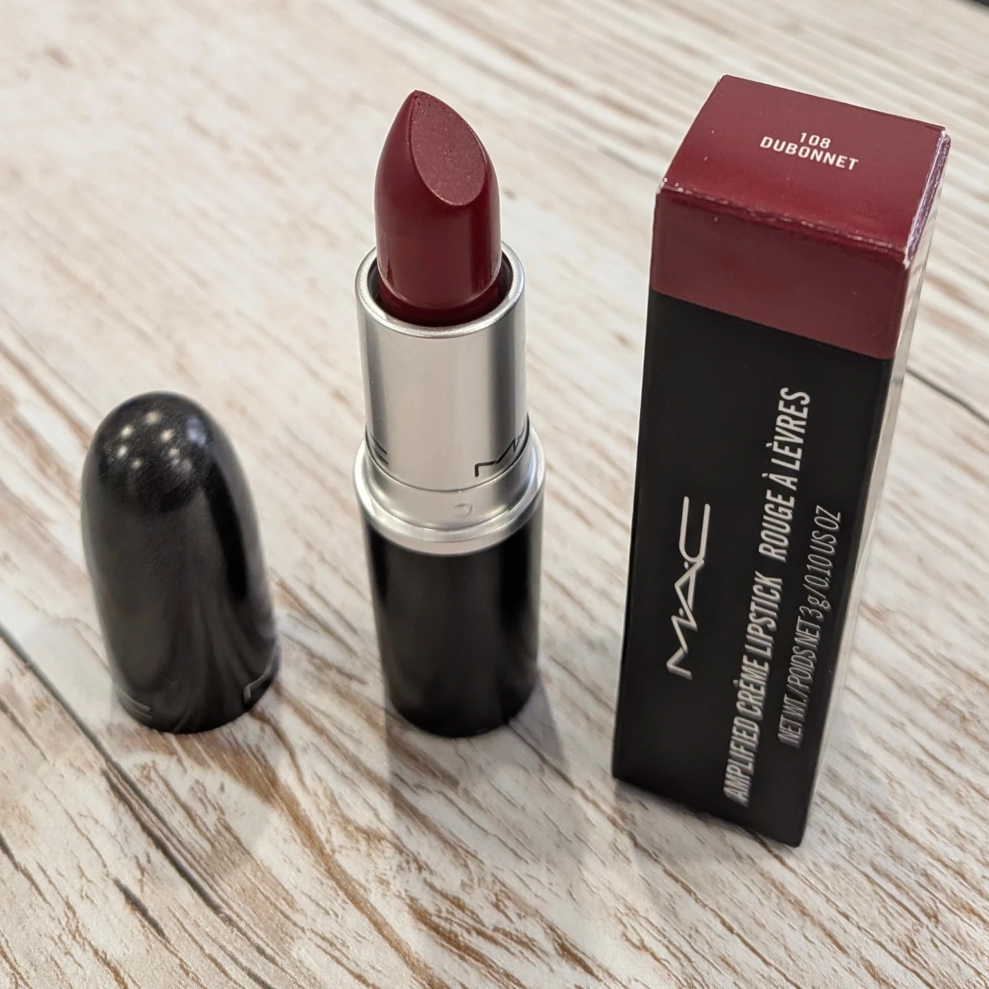 Selling a MAC Amplified Creme Lipstick in the shade 108 Dubonnet! The lipstick comes with its original box. It's a beautiful, rich colour that would be a great addition to your makeup collection
