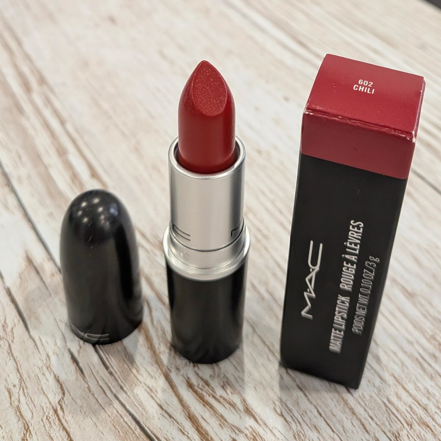 a brand new MAC Matte Lipstick in the shade 602 Chili! A beautiful red colour that's perfect for any occasion