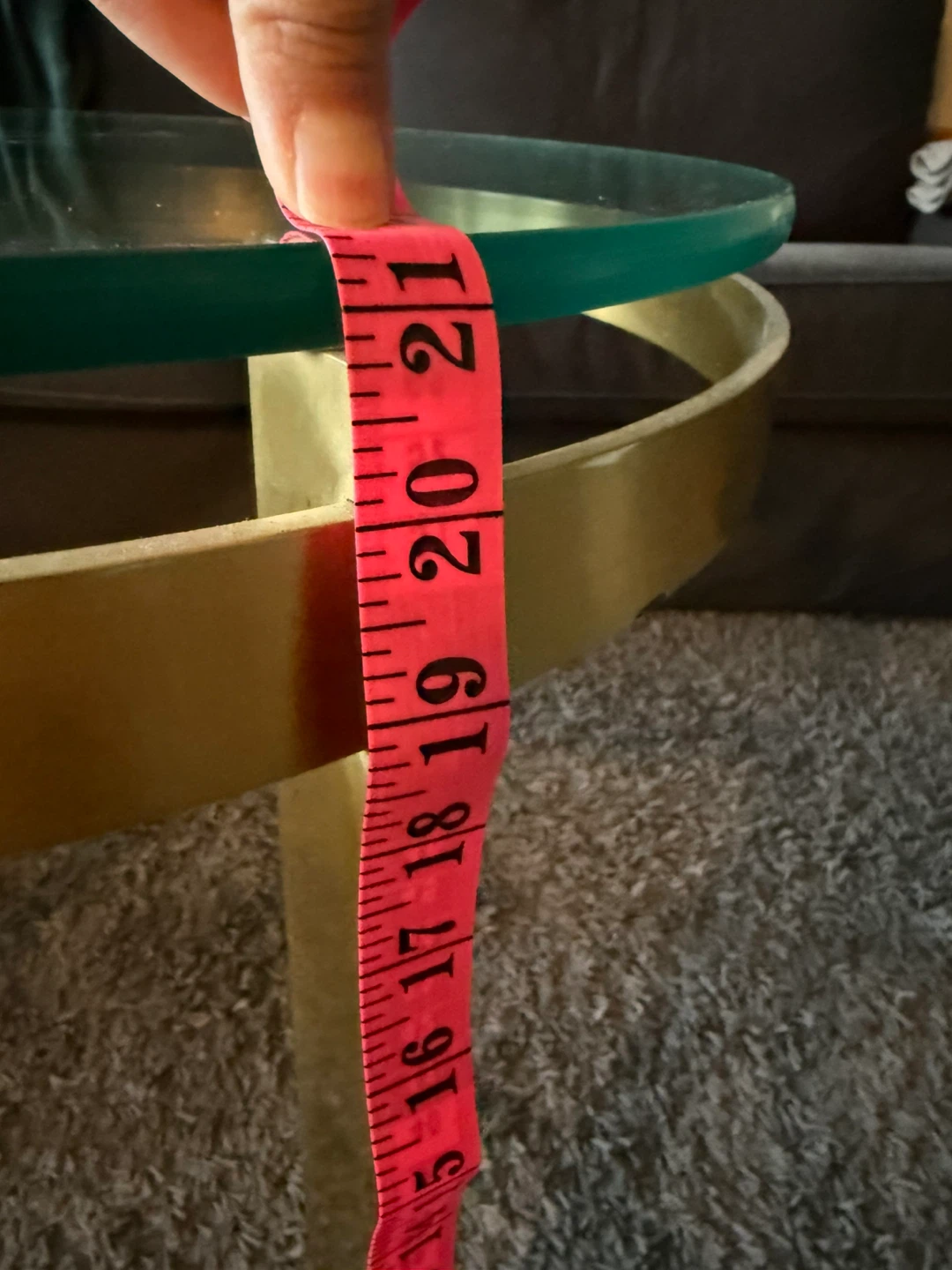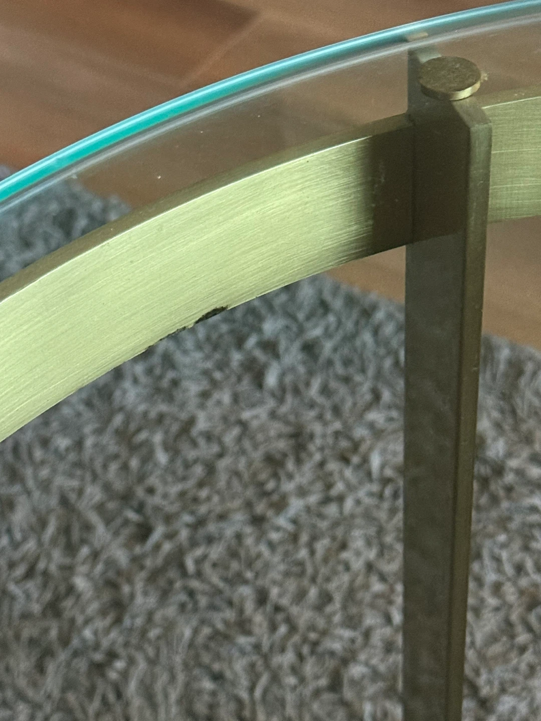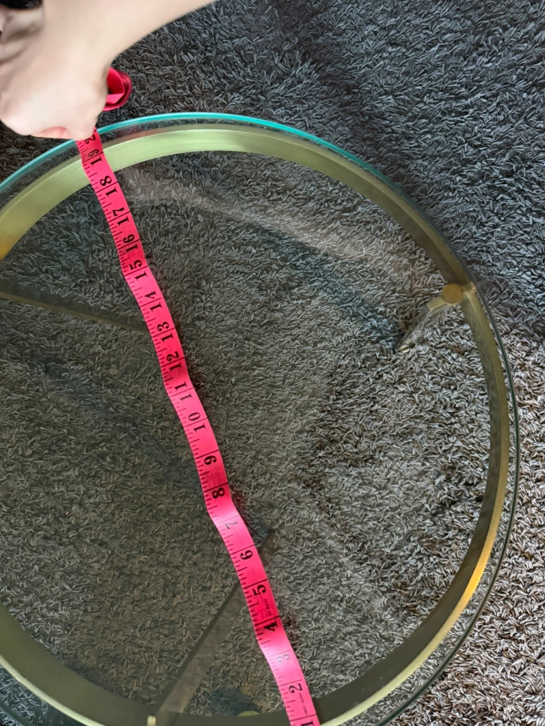 Selling a stylish round coffee table with a glass top and gold-tone metal frame. It's approximately 21 inches in diameter and would make a great addition to any living room!