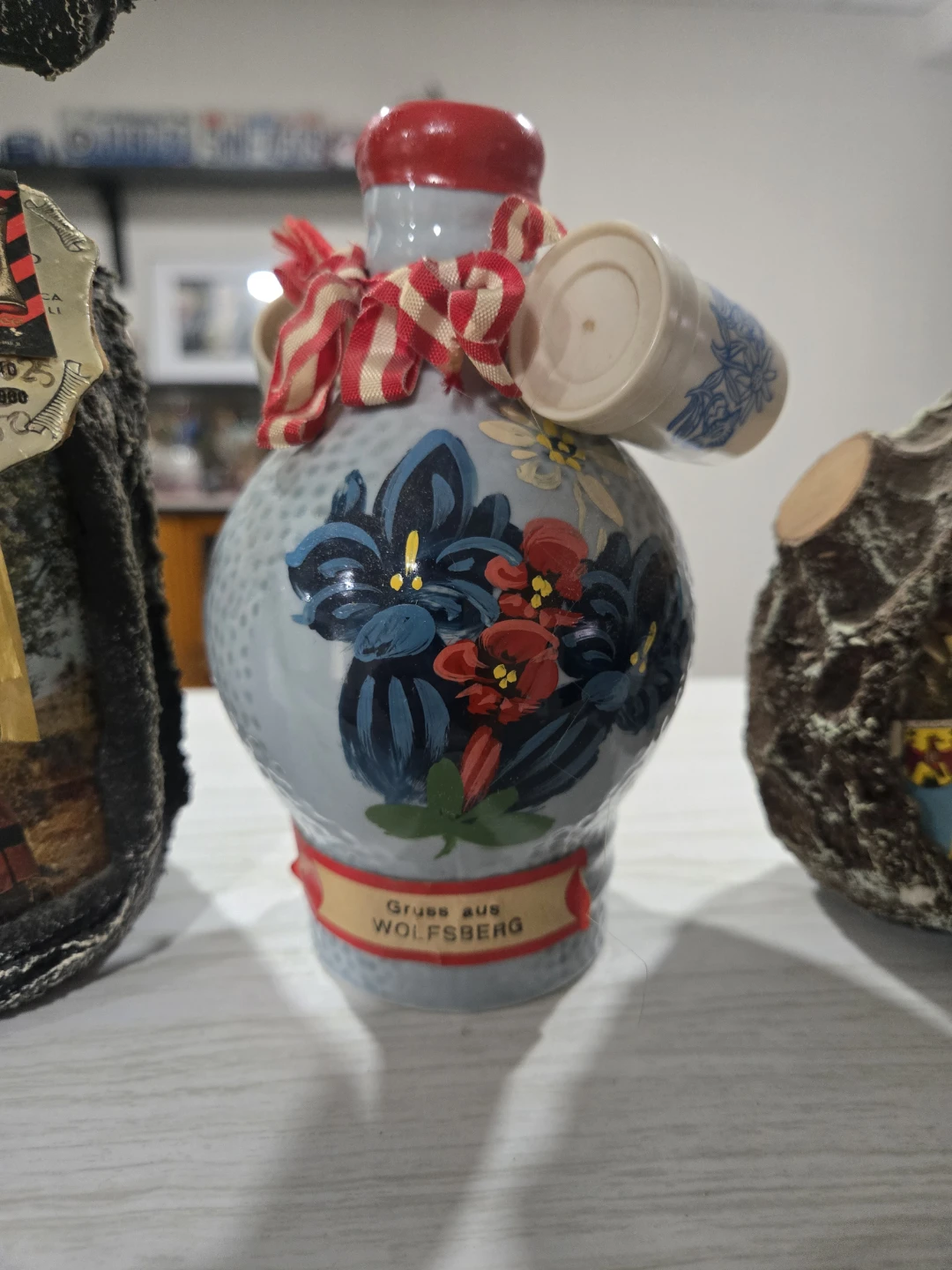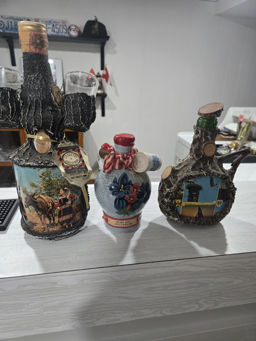 .The first two bottles are full with liquor still.