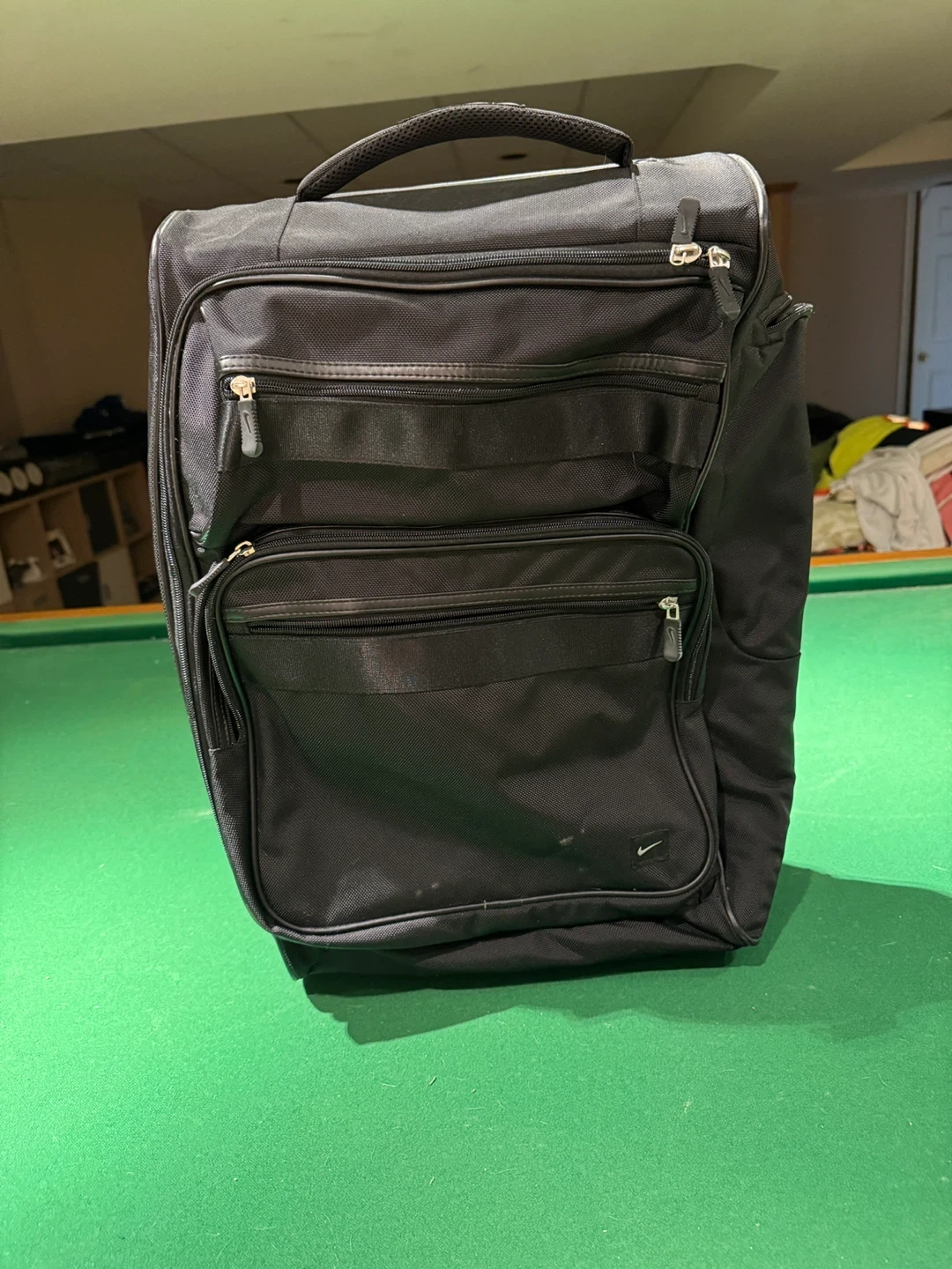 Selling a Nike Golf rolling suitcase in black. It has some signs of use, but is still in good condition and ready for your next trip to the golf course or wherever you're headed!