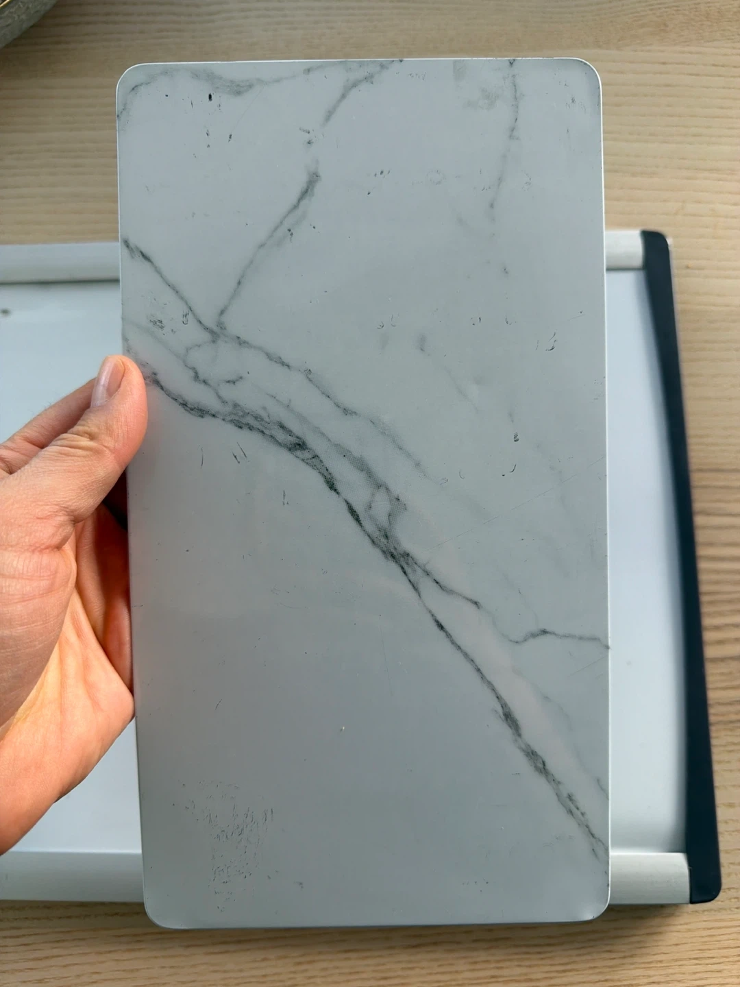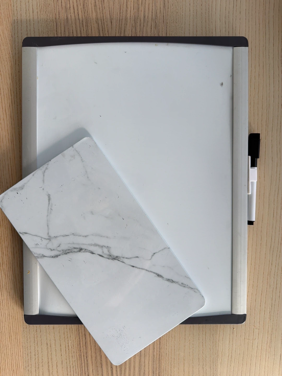 Whiteboard with Marker and Marble-Patterned Eraser