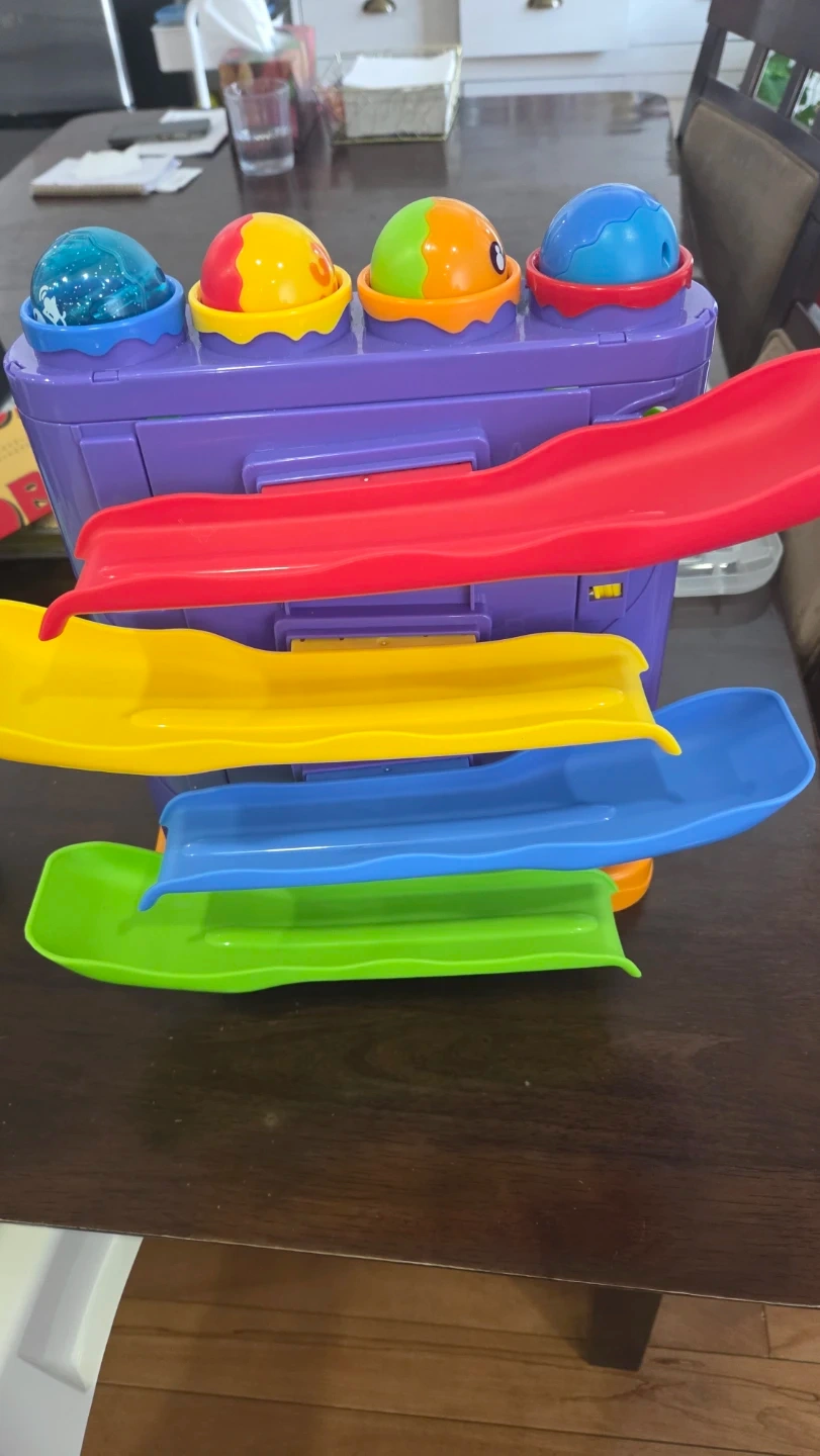 This is a Hahaland 2 in 1 Baby Toys 12-18 Months Development toy. It is a toddler car ramp toy for 1-2 year old boys and girls. It's a Montessori Pound a Ball Hammer Toy and would make a great gift for little ones!