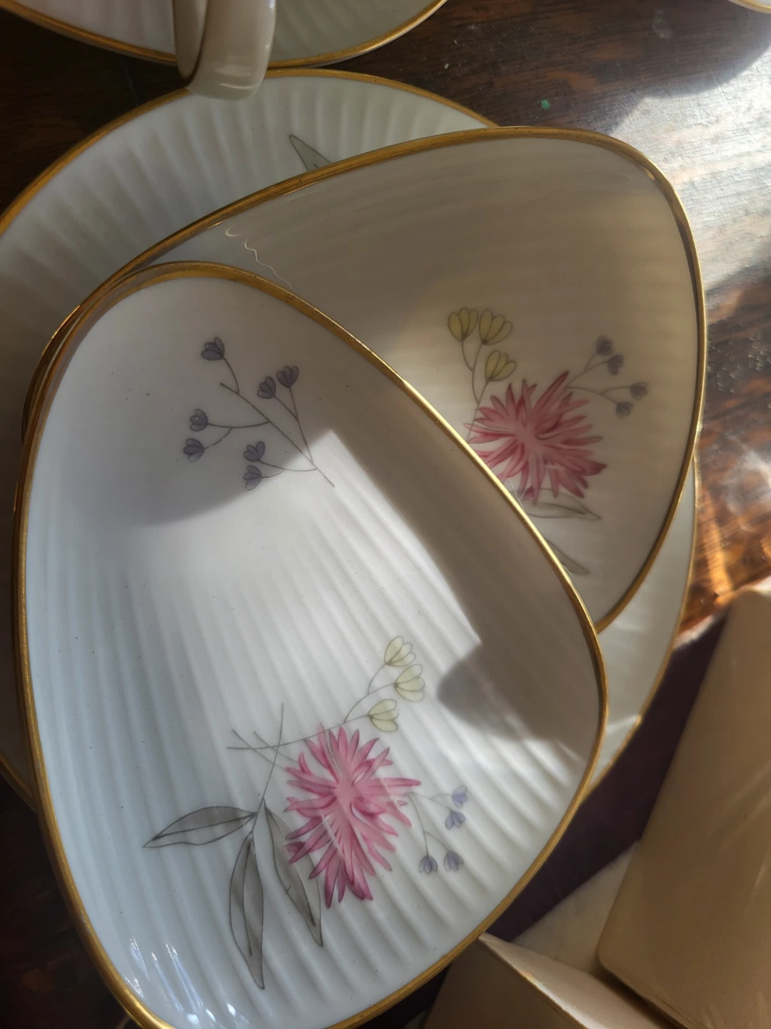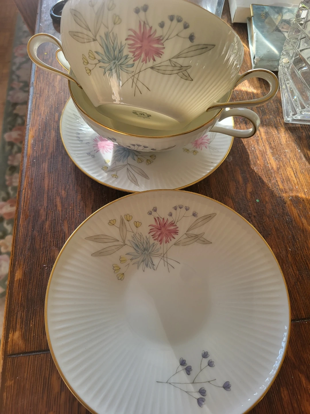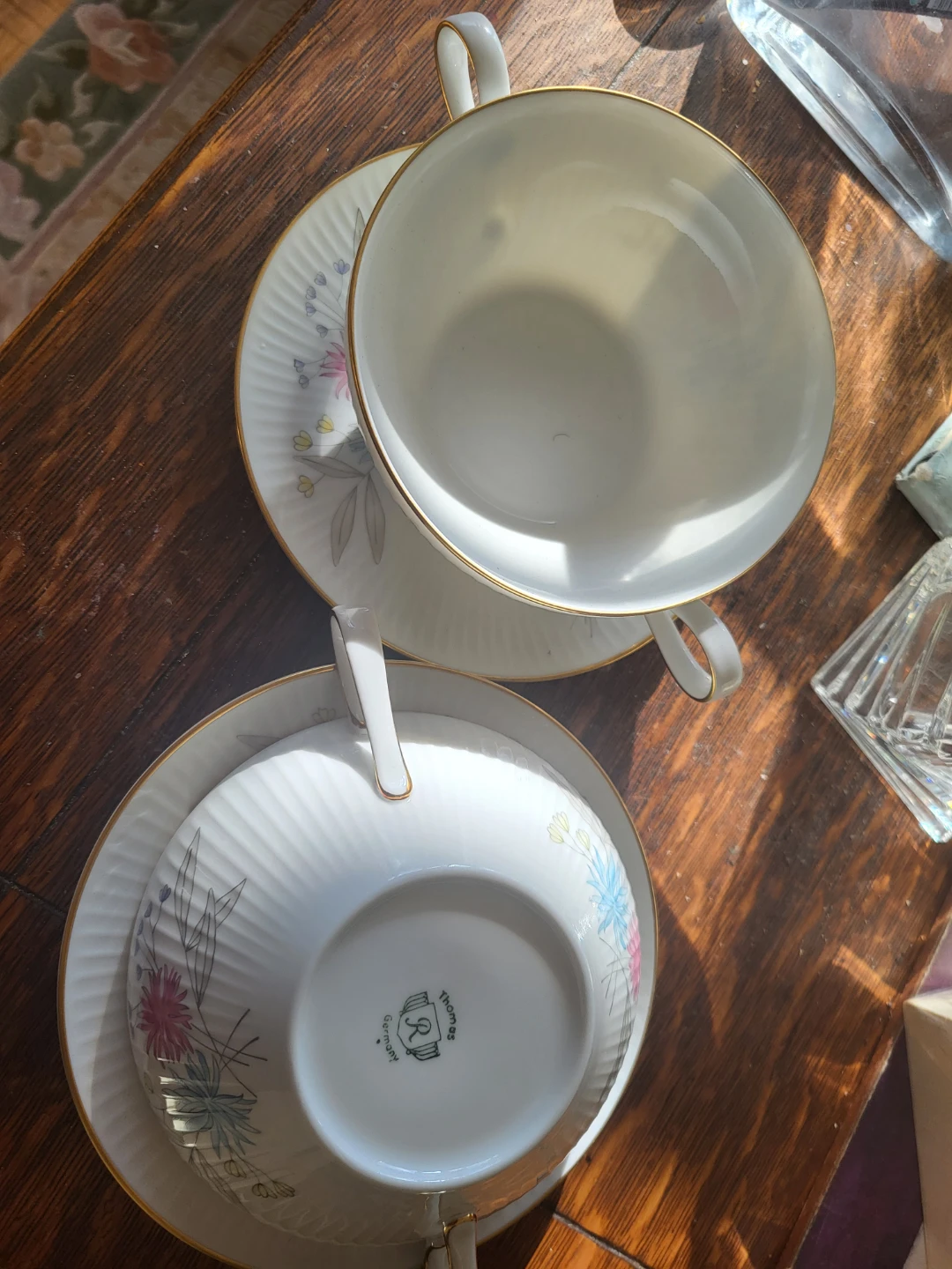 Selling a set of 5 Thomas Germany soup bowls and saucers. These are in great condition and feature a delicate floral design with a gold trim. Perfect for adding a touch of elegance to your table!