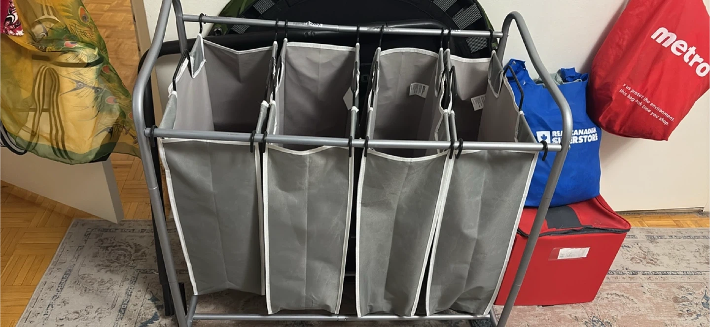 Declutter your laundry routine with this handy 4-section laundry sorter! It's perfect for keeping your whites, darks, and colours separate, making laundry day a breeze. The sorter features a sturdy frame and removable bags for easy transport to the washing machine. Great for apartments, dorms, or any home where space is at a premium