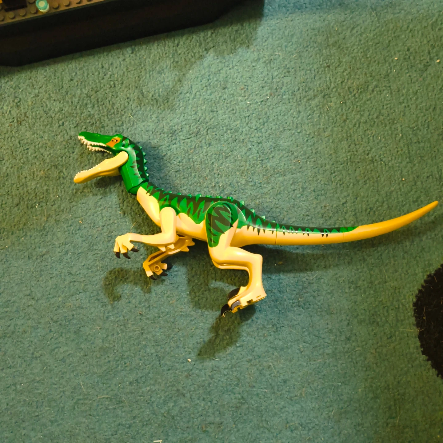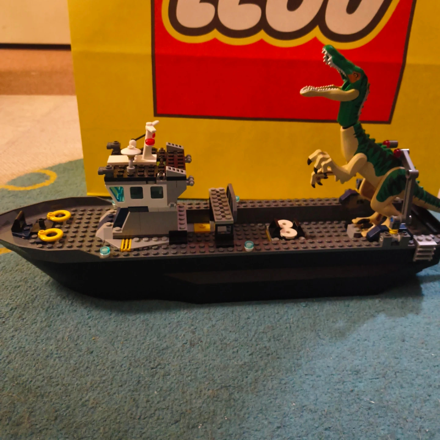 Selling a LEGO Jurassic World boat set, with green baryonyx. Everything is in good condition and seems to be there. Small pieces might be missing. No box or instructions.