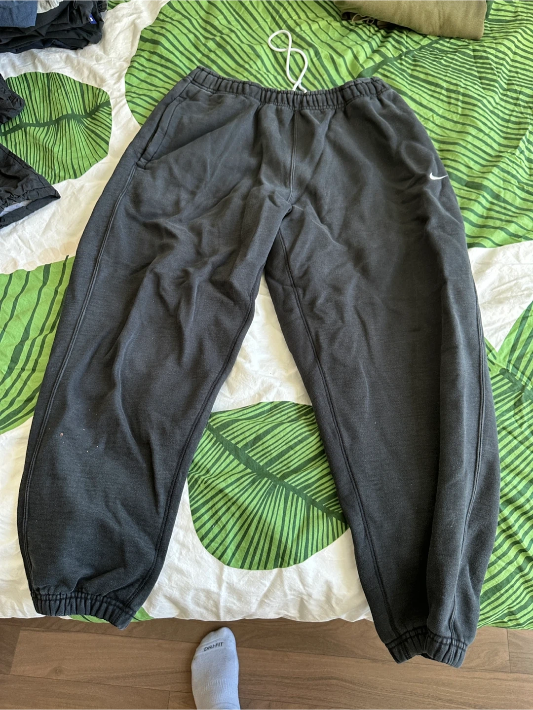 Selling a pair of Nike sweatpants in black! They're a size large and in great condition. Perfect for lounging or working out!