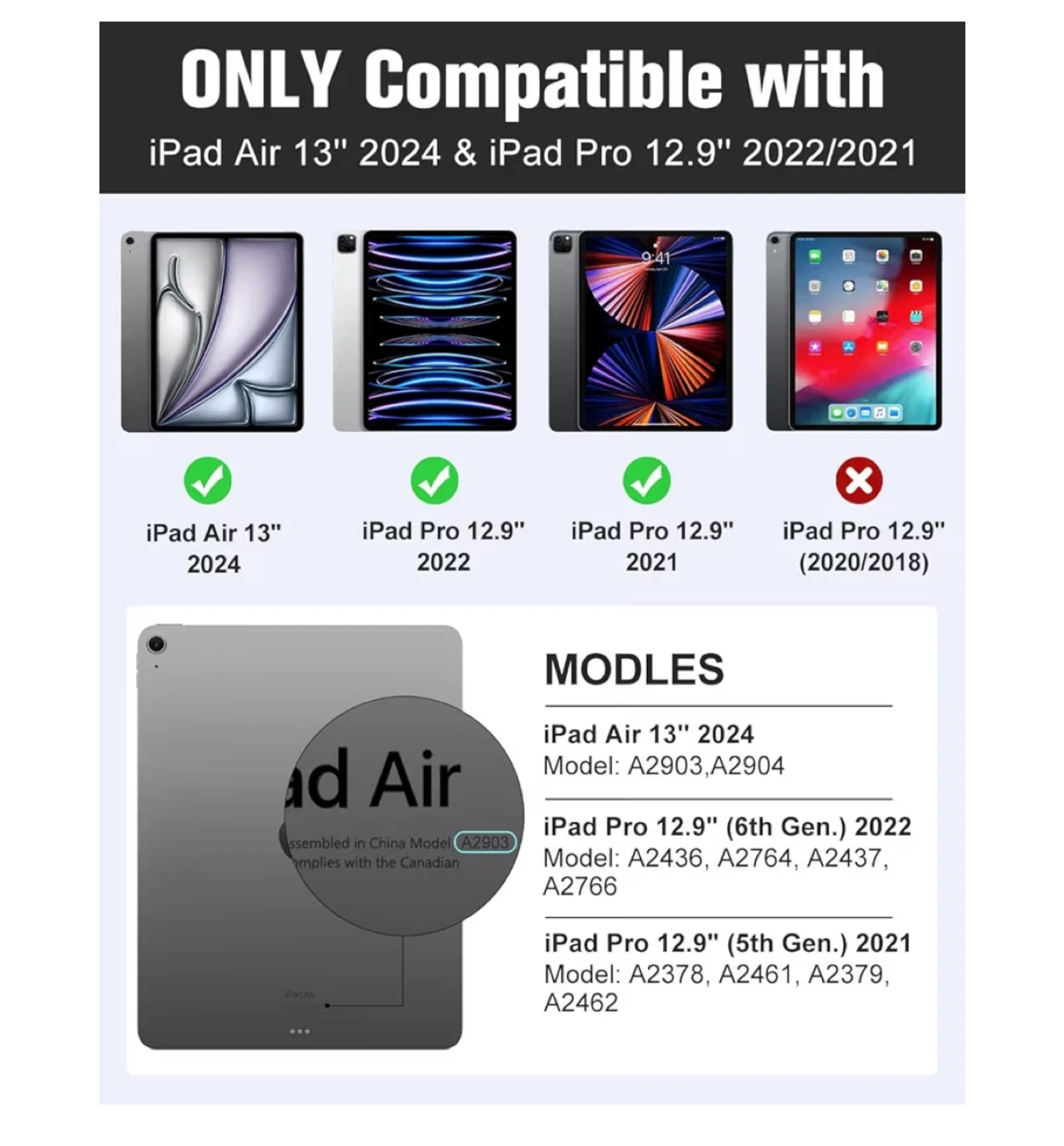 iPad Air 13 Inch Case (M3 2025/M2 2024), iPad Pro 12.9 Case (6th/5th Gen 2022/2021)