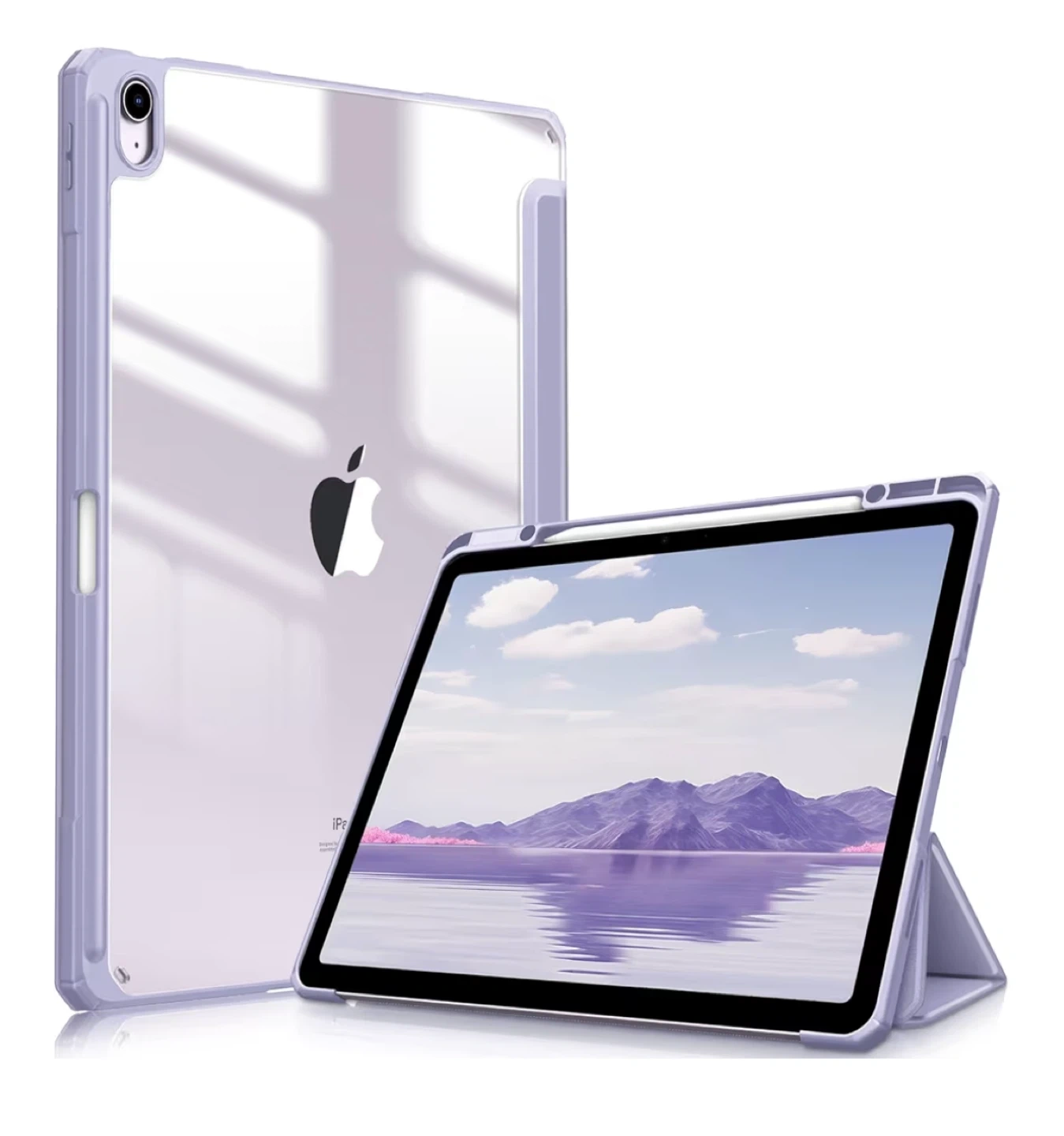 Fintie Hybrid Slim Case for iPad Air 13-inch (M3) 2025 / (M2) 2024, [Built-in Pencil Holder] Shockproof Cover with Clear Transparent Back Shell (Lilac Purple)