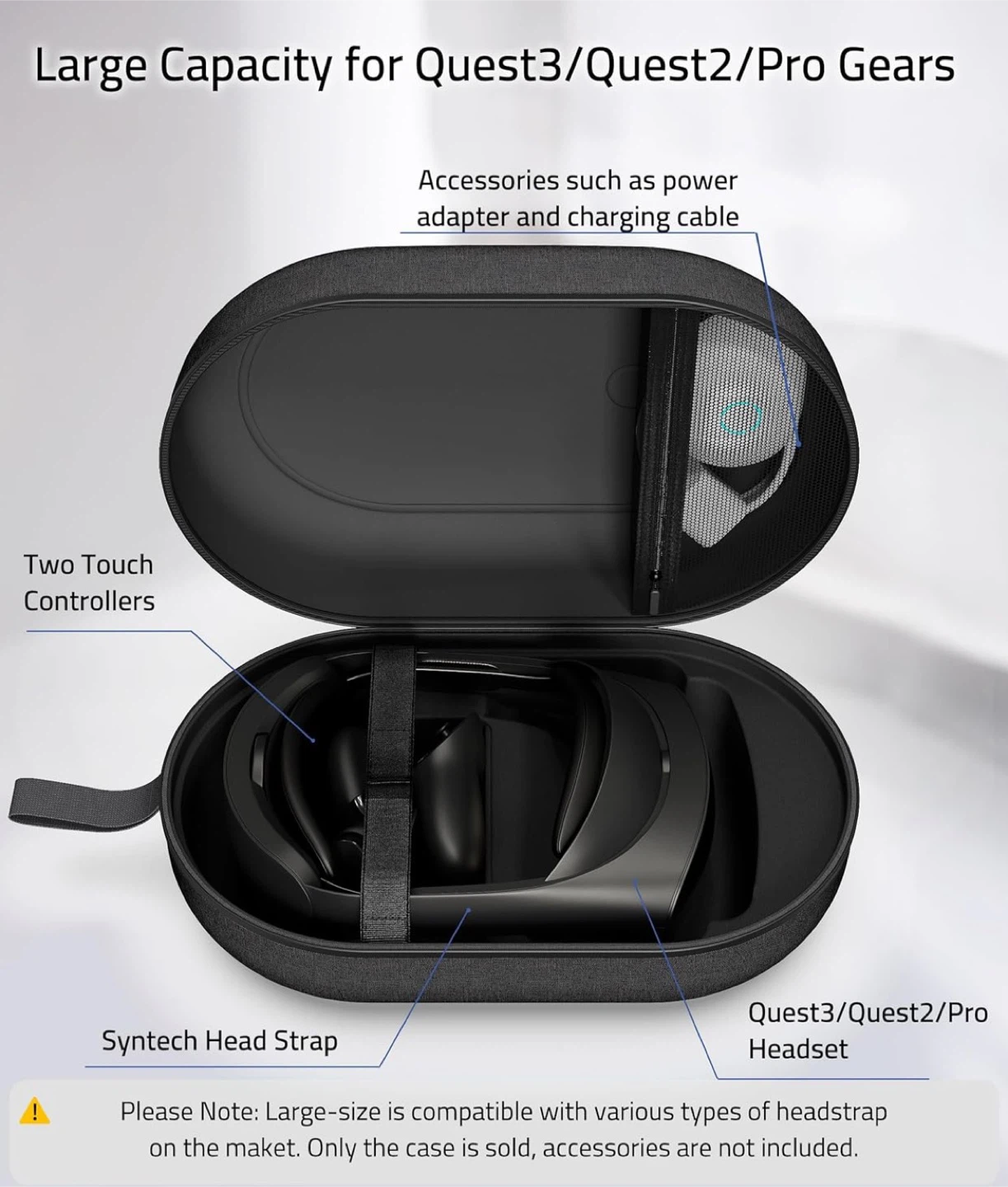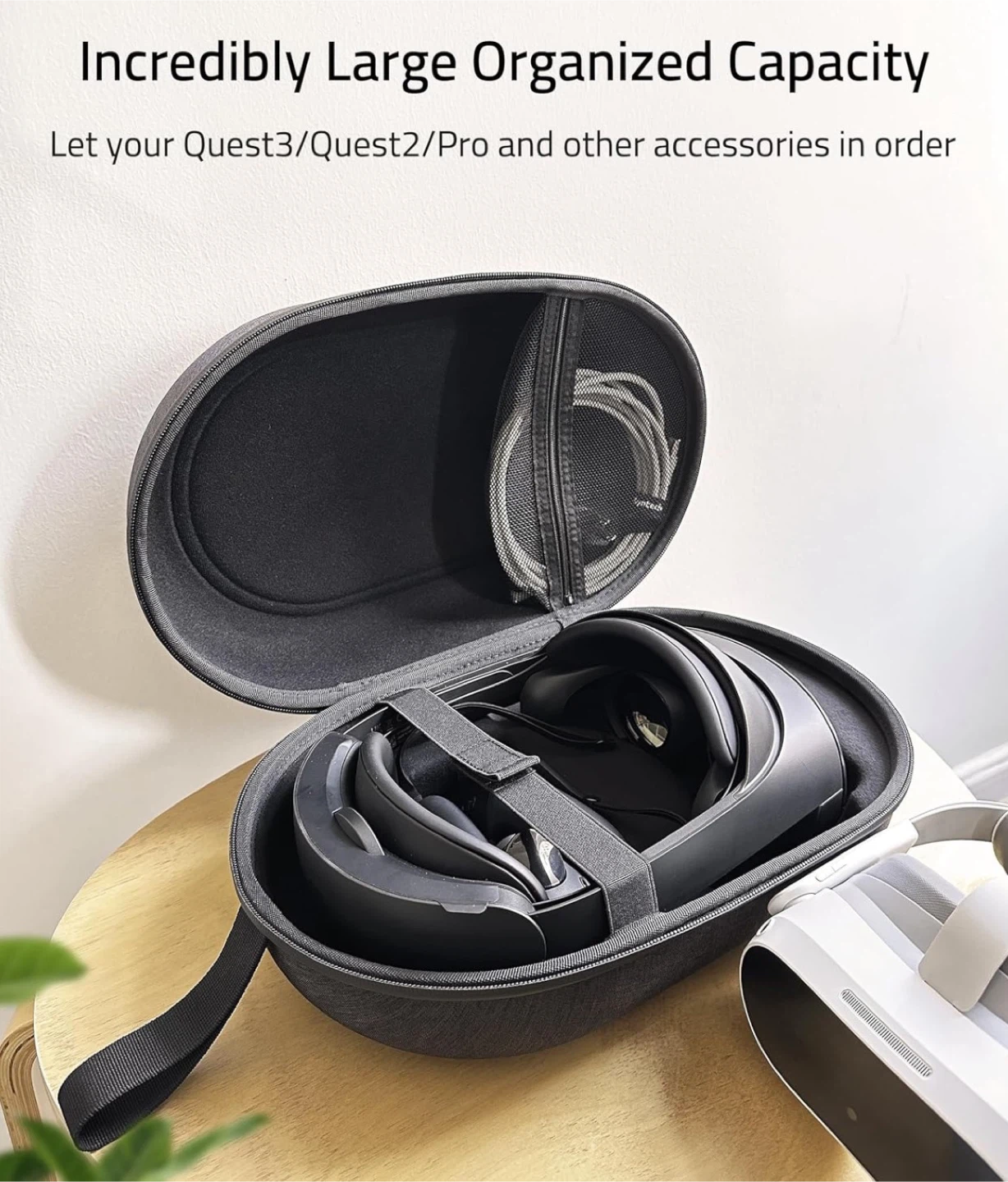 • Large capacity fits headset + 2 controllers