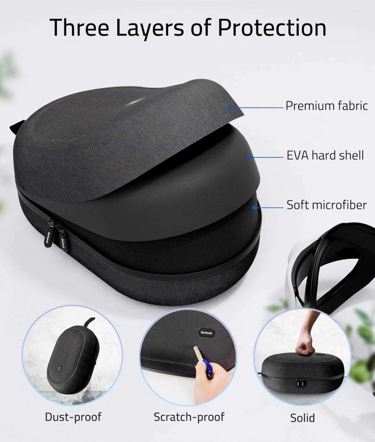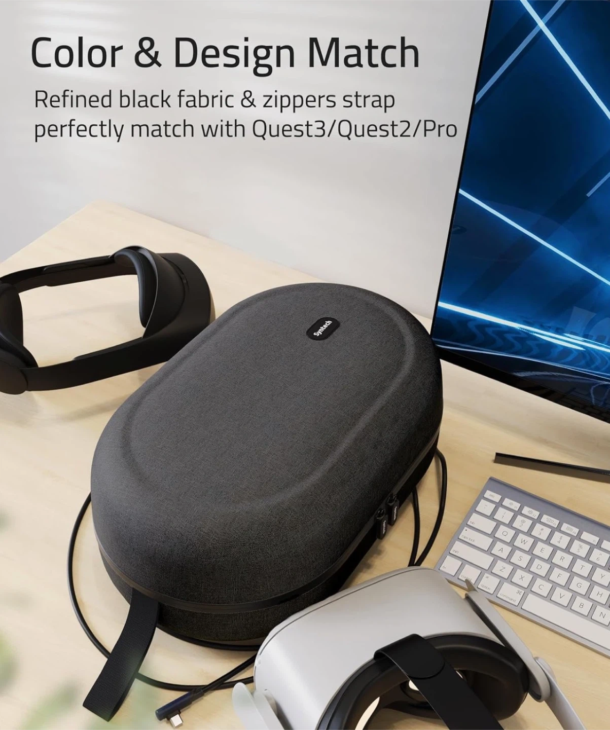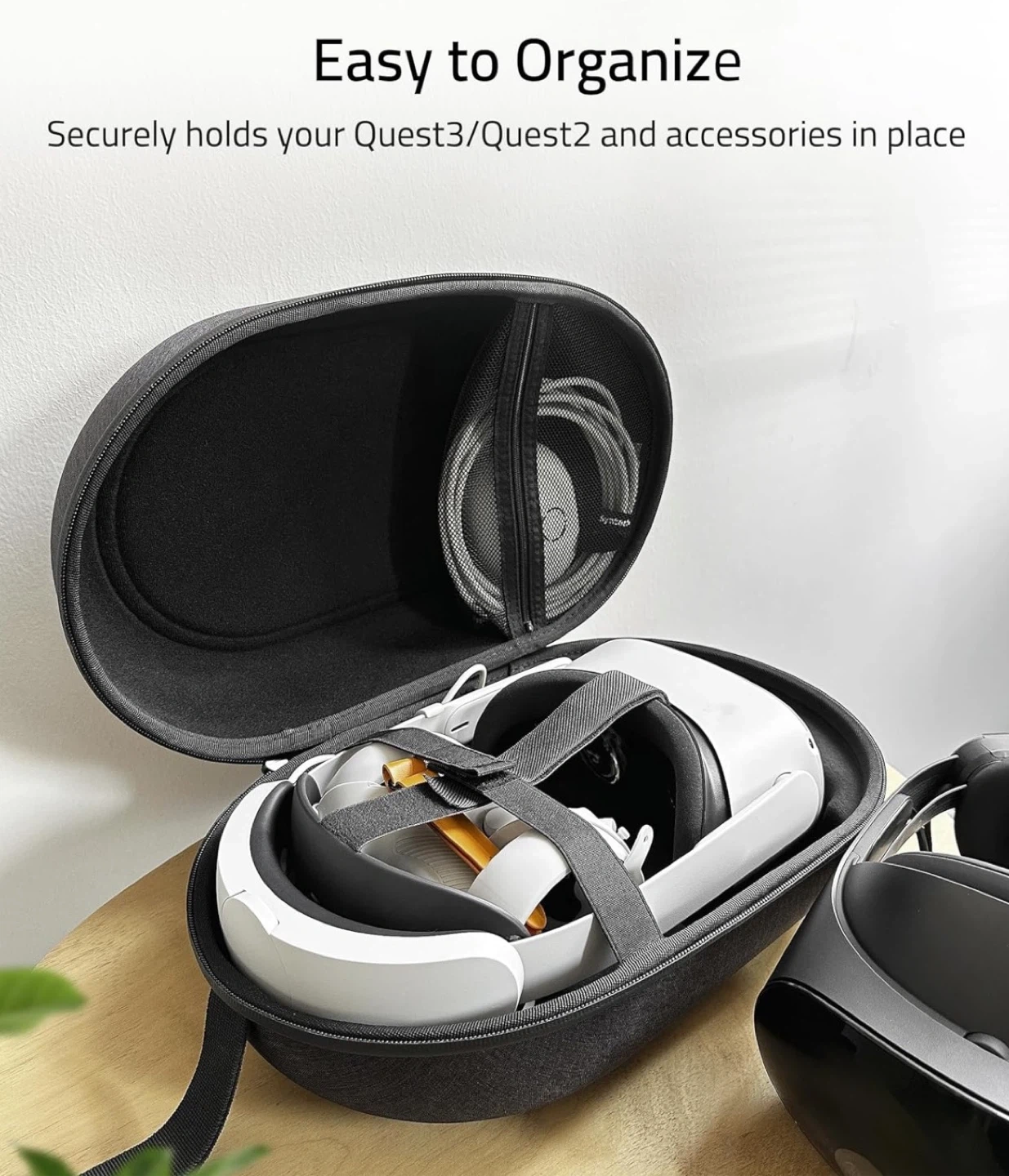 Protect and store your VR headset safely with this premium Syntech hard carrying case, designed for larger setups and third-party head straps.