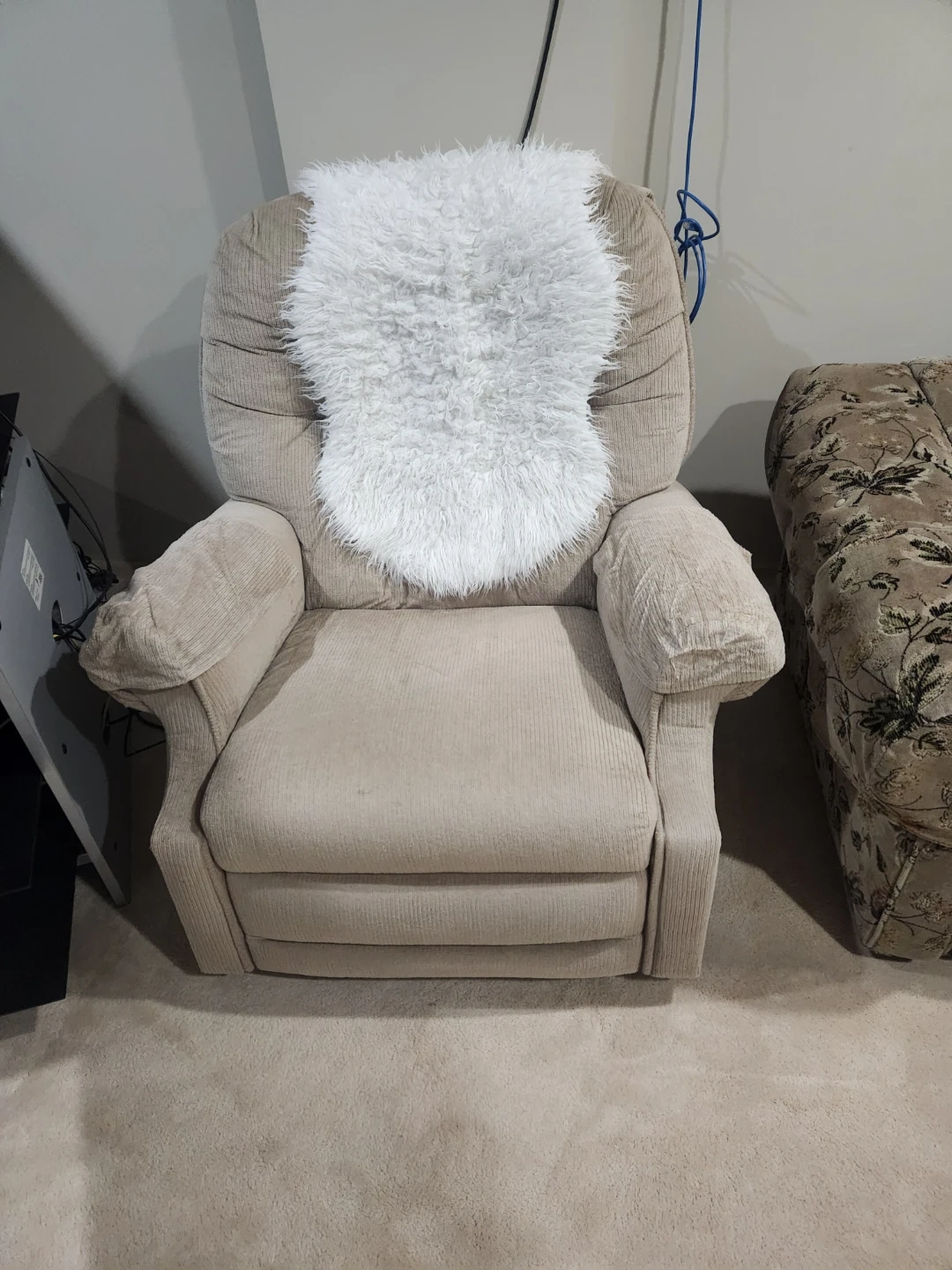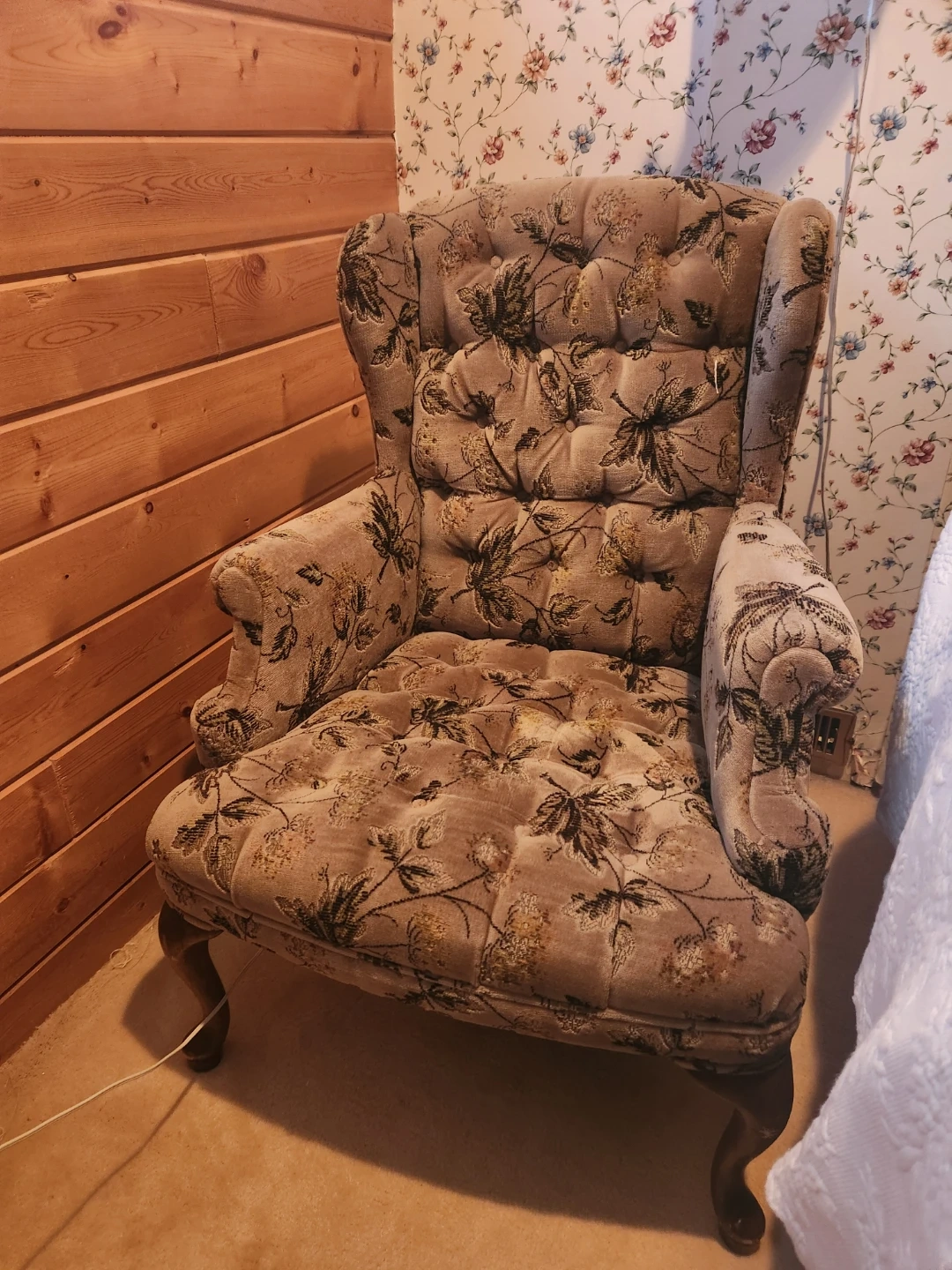 I have a few pieces of used furniture for sale. There's a recliner, a floral sofa, and a floral armchair. They are all in used condition. Please message me if you're interested!