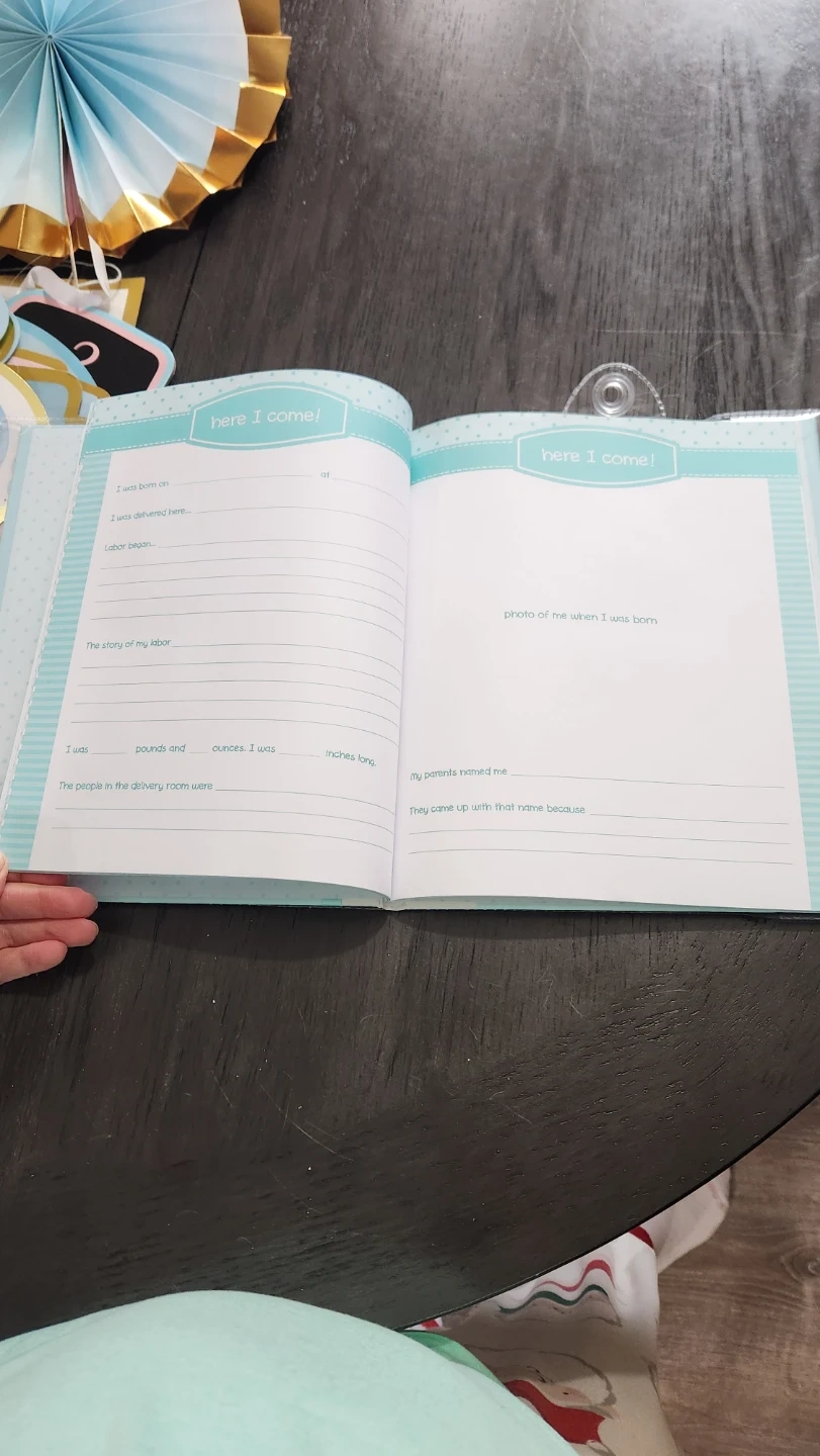 Selling a baby record book with a 'Sweet Baby Boy' design. It's perfect for recording all those precious early memories! The book has designated spots to write about the story of the labor, baby's weight and length, and who was in the delivery room. There's also space for a photo of when baby was born. It's a lovely keepsake to cherish those first moments