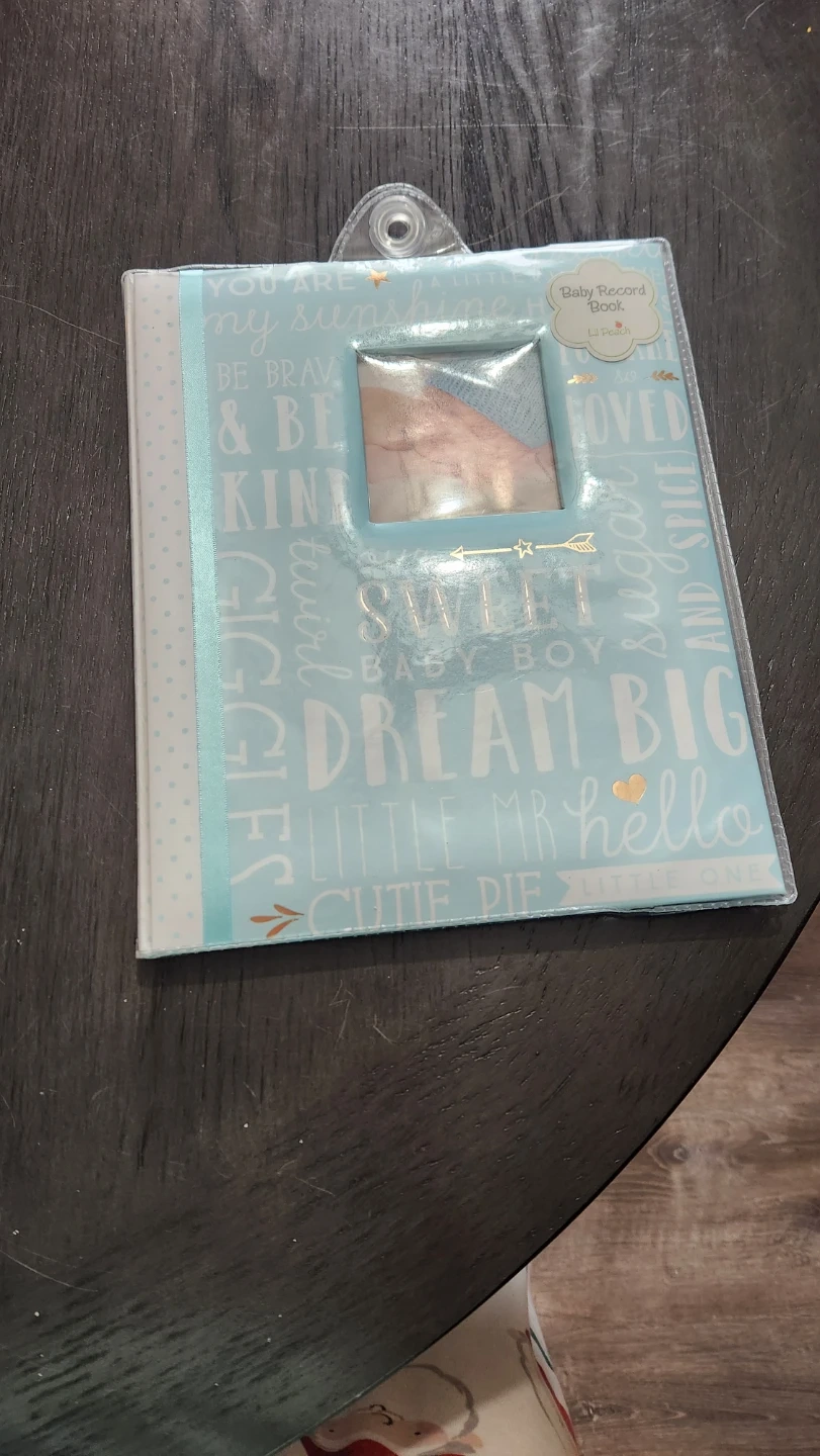 Selling a baby record book with a 'Sweet Baby Boy' design. It's perfect for recording all those precious early memories! The book has designated spots to write about the story of the labor, baby's weight and length, and who was in the delivery room. There's also space for a photo of when baby was born. It's a lovely keepsake to cherish those first moments