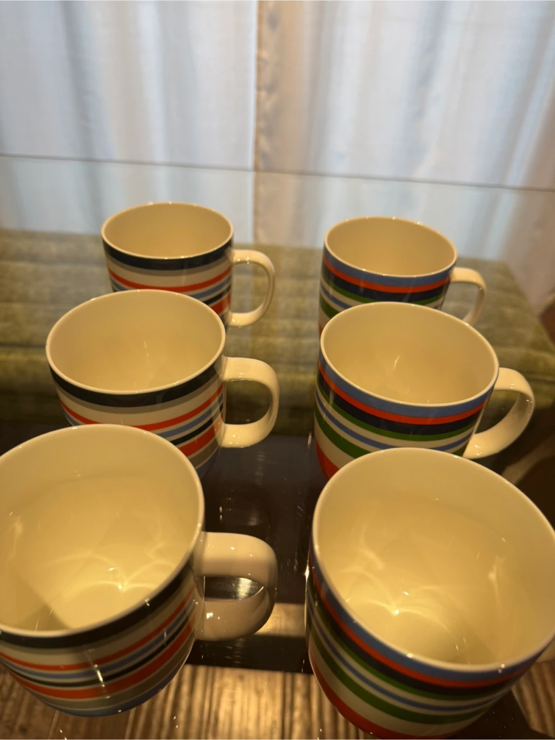 Brand new, never used designer porcelain mugs by Matt Guthrie. Vibrant nautical "Boat Club" stripe pattern. High-quality porcelain, dishwasher/microwave safe. Perfect for a gift or your cottage!