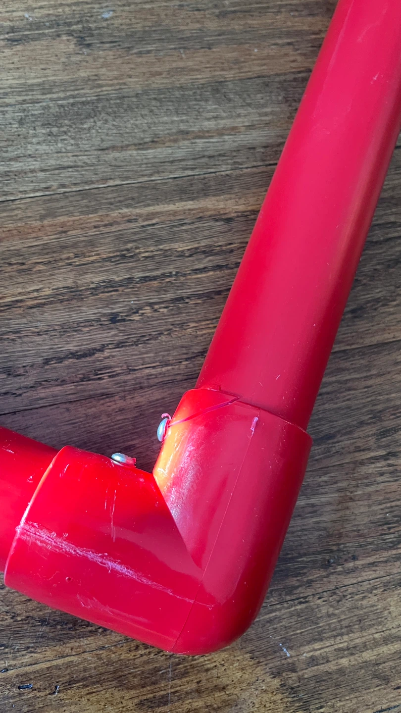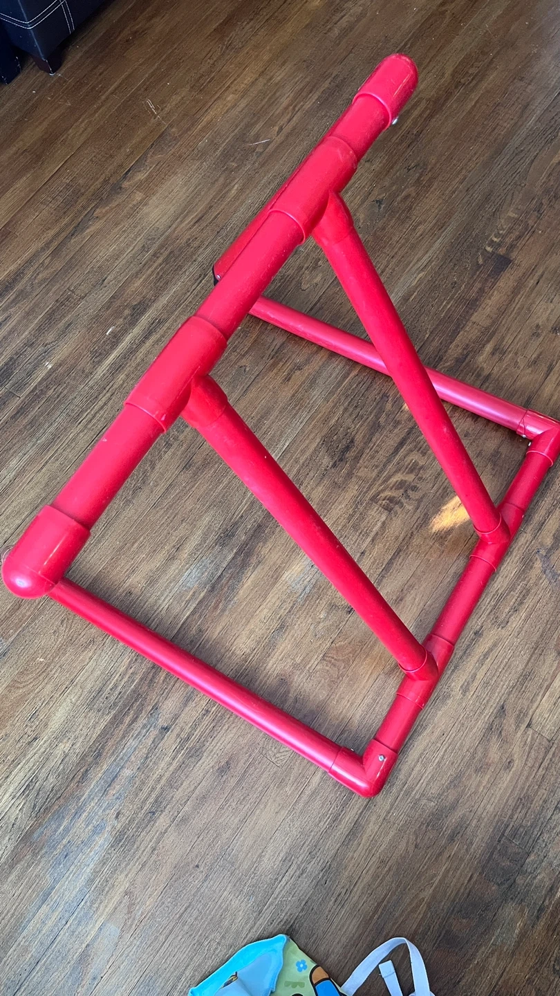I'm selling a red PVC kids skating aid. It's in good condition and perfect for helping little ones have fun at the rink. It's lightweight and easy to move around. A small crack as shown on the picture but does not affect functionality.