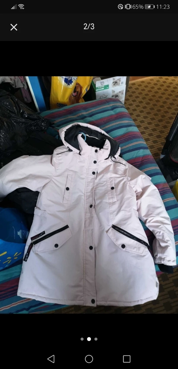 Here's a Canada Weathergear Super Triple Goose jacket. It's designed in Canada and has a distinctive red logo. It's a size lg It maintains warmth down to -30°C ~ -40°C and camo winter coat size lg as well