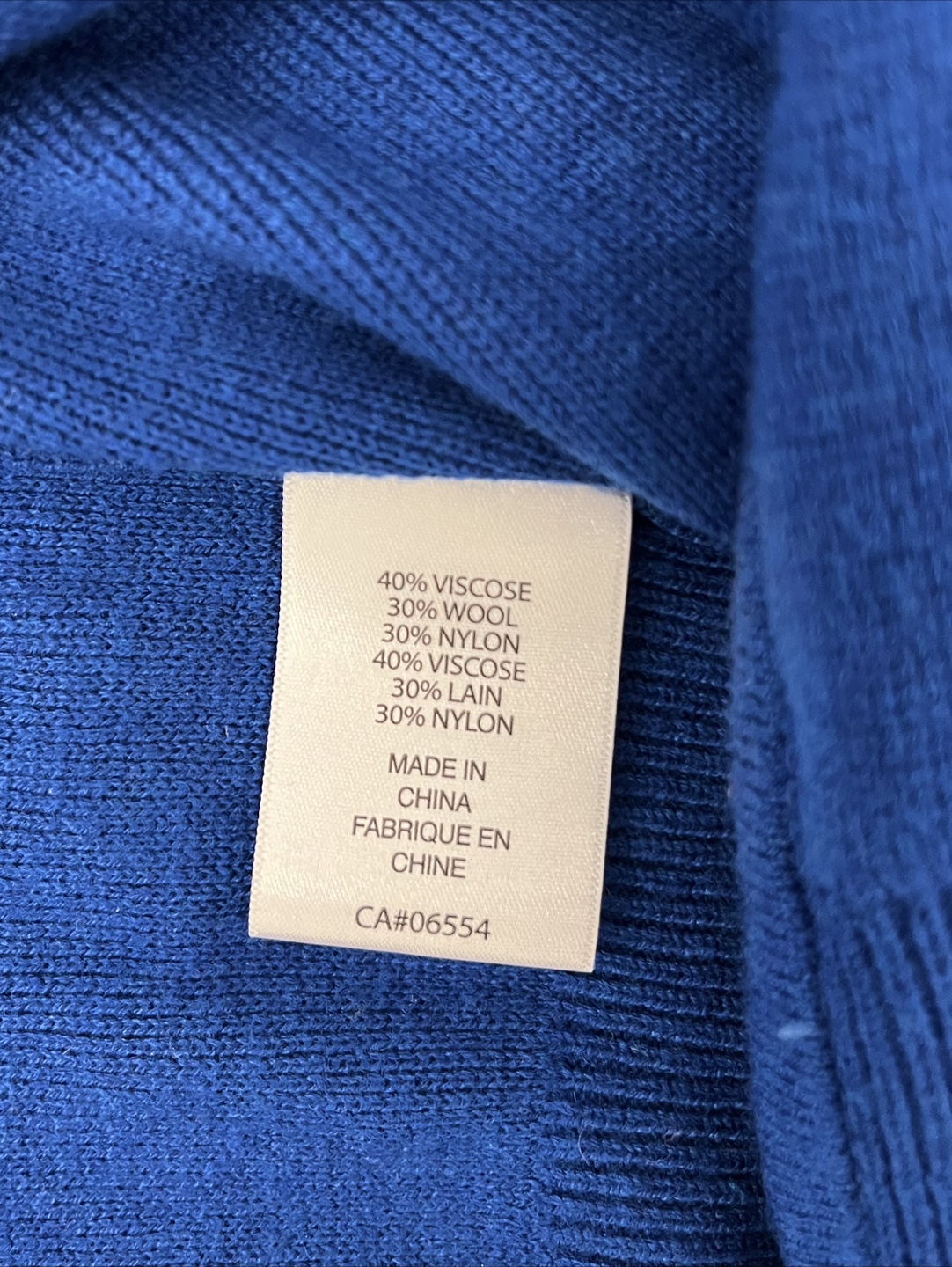 The material is 40% viscose, 30% wool, and 30% nylon