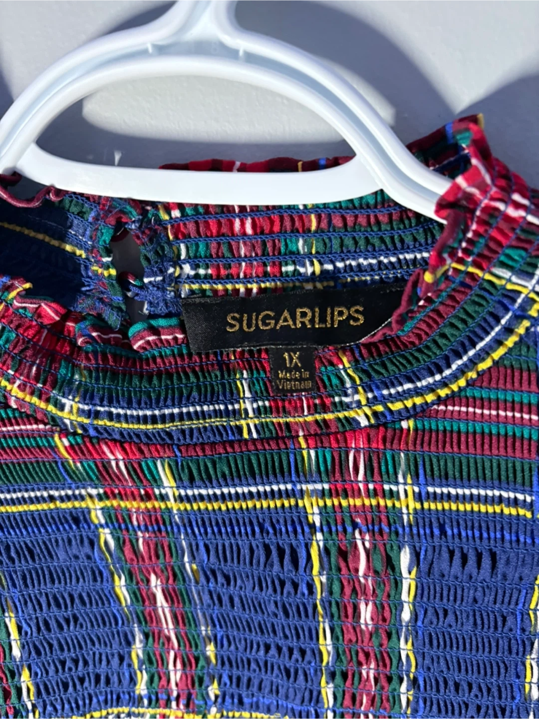 Buy & SellSugar Lips Plaid Ruffle Top - 1XSugar Lips Plaid Ruffle Top - 1X$18Here's a Sugar Lips top in size 1X! It has a unique plaid pattern and ruffle detailing, perfect for adding a bit of flair to your wardrobeConditionNewSize1XBrandSugar LipsWHERE TO MEETCheck LocationView MapSELLERverifiedZeeAinslie Wood West600 reviews0 chats·1 favorites·6 viewsSEND CHAT TO SELLERHi Zee! I’m interested in your listing.Hi Zee! I’m interested in your listing.Get the Karrot app to chatSign In to chat