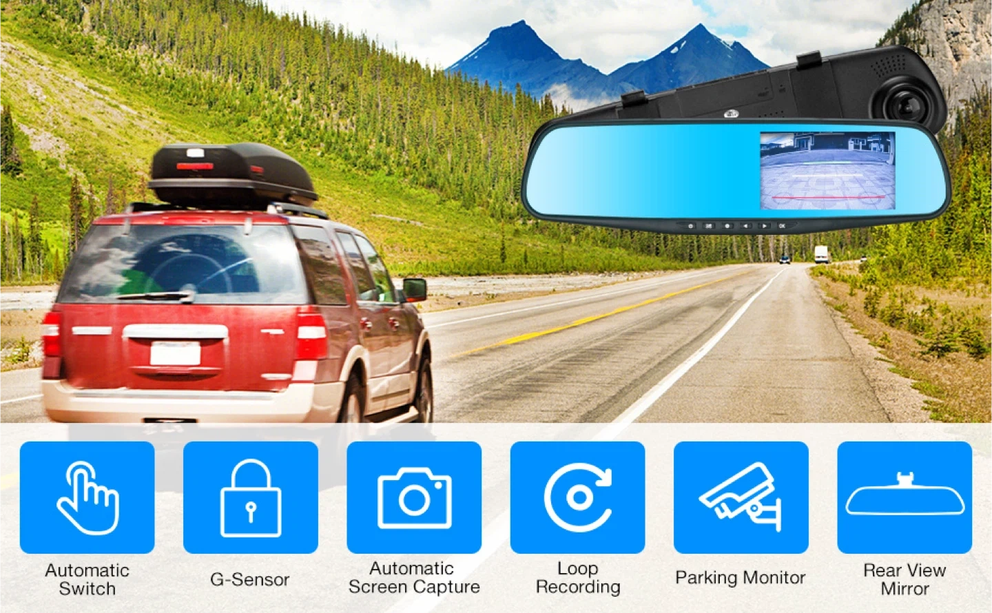 Blue Anti-Dazzle mirror Dash Cam Front with Parking and G-Sensor Mode