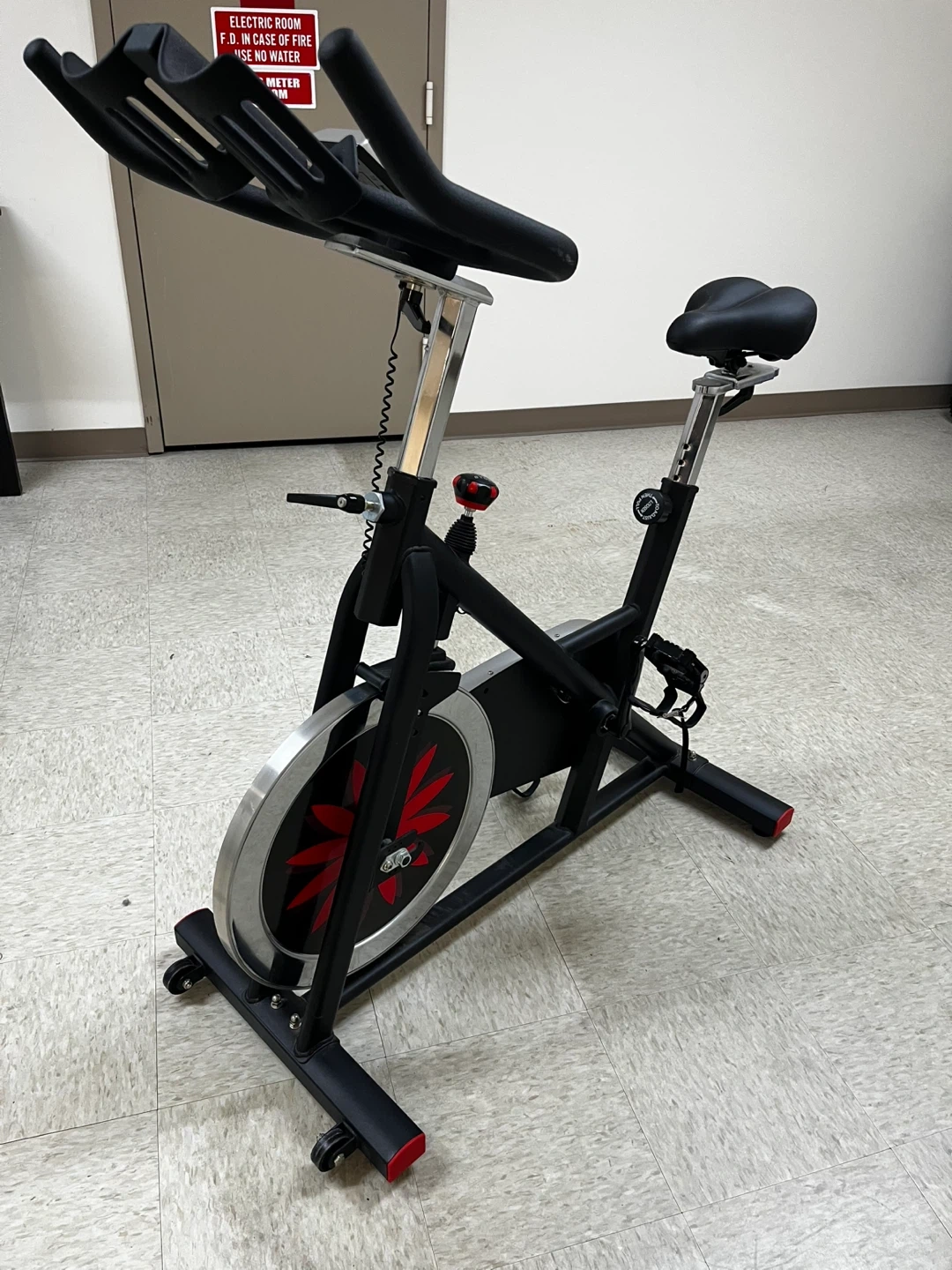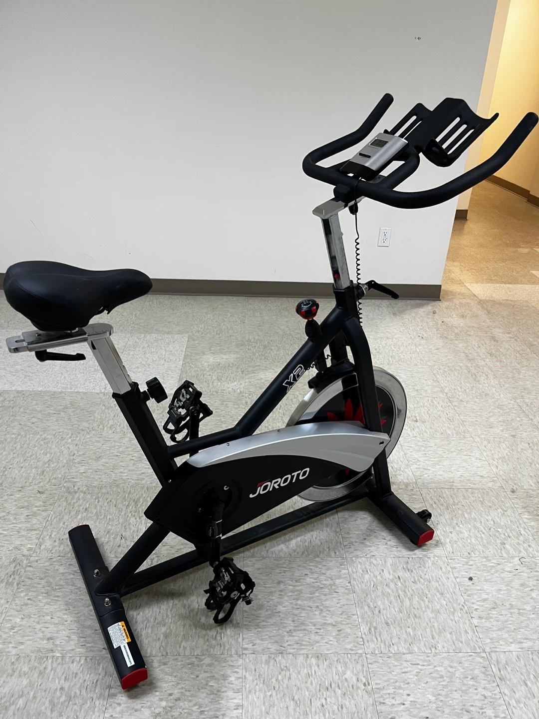 Originally purchased new for $340, currently in great condition. This bike is sturdy and very quiet. I added pedals that are compatible with spd clips or with sneakers. I also added a padded seat cover.