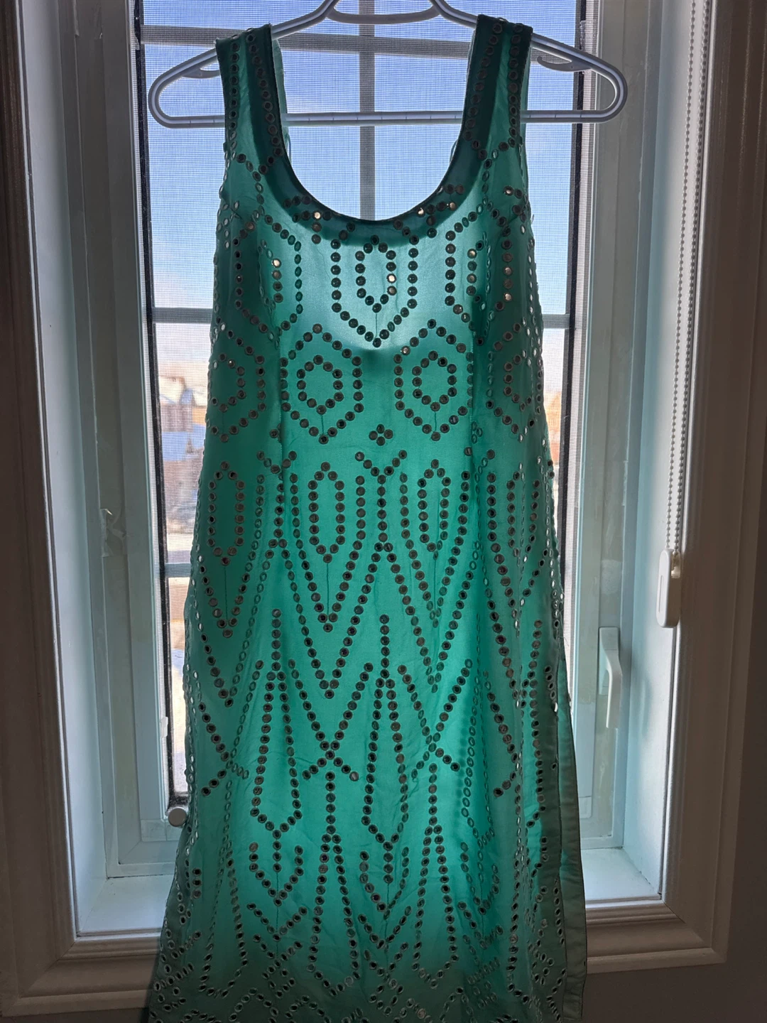 Selling a cute teal dress and pants set with sequin detailing! The dress has a sleeveless design and the pants are a shiny silver colour. Perfect for a night out or a special occasion