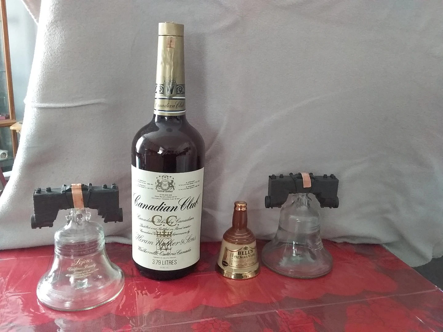 4 unique liquor bottles, 1 large CC whiskey bottle, 2 liberty bell bourbon bottles, 1 Bell's scotch whiskey bottle. $40 for all 4. The Bell's scotch whiskey bottle is missing the cork. Pick up in Bolton. Proceeds going to charity.