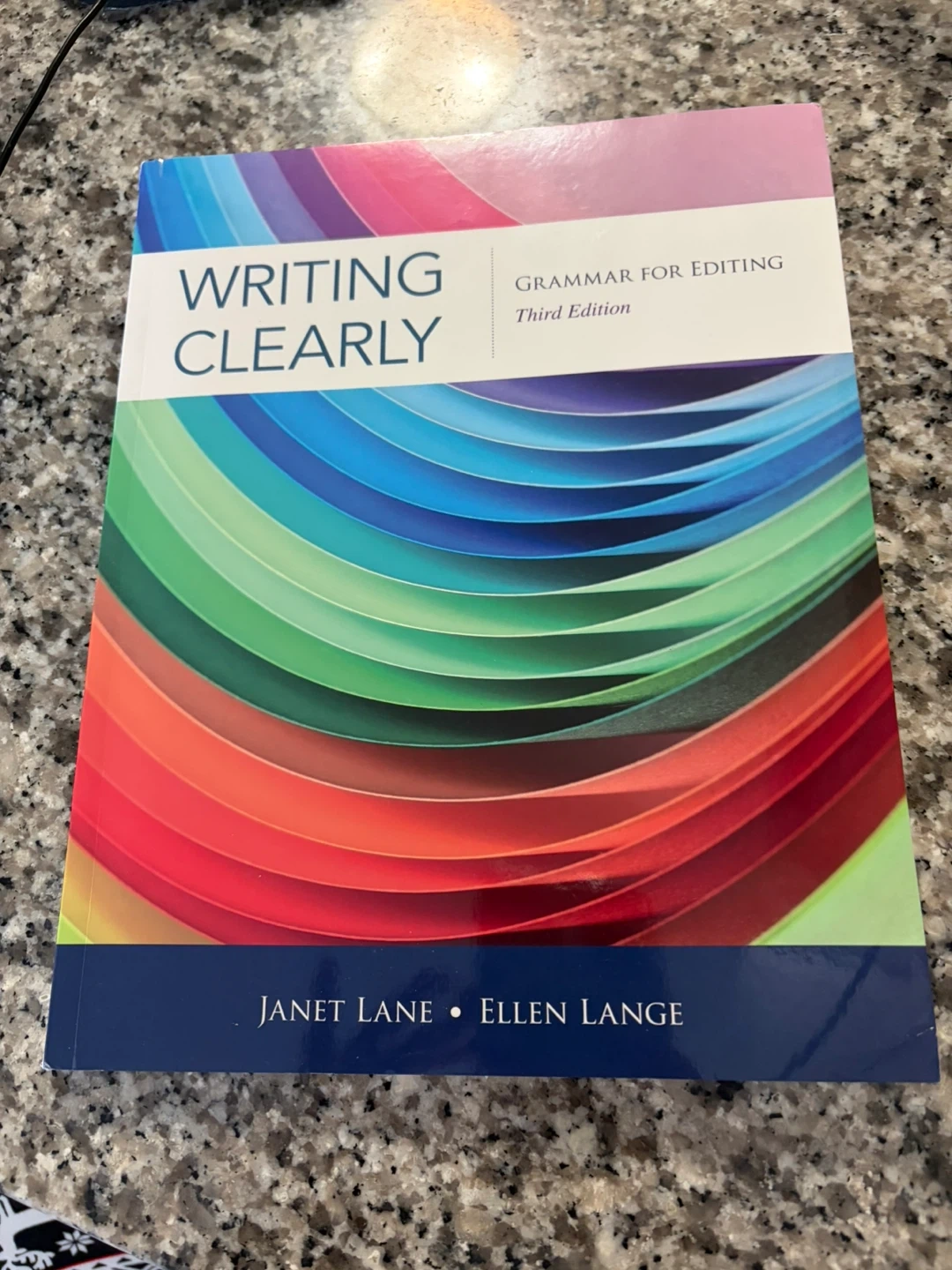 Selling "Writing Clearly: Grammar for Editing, Third Edition" by Janet Lane and Ellen Lange. This book is great for students looking to improve their grammar and editing skills. It includes new pre-test and post-test sections, a full-colour design, a comprehensive online instructor's guide, photo-based assignments, and in-depth editing exercises. Perfect for anyone studying English language or teaching!