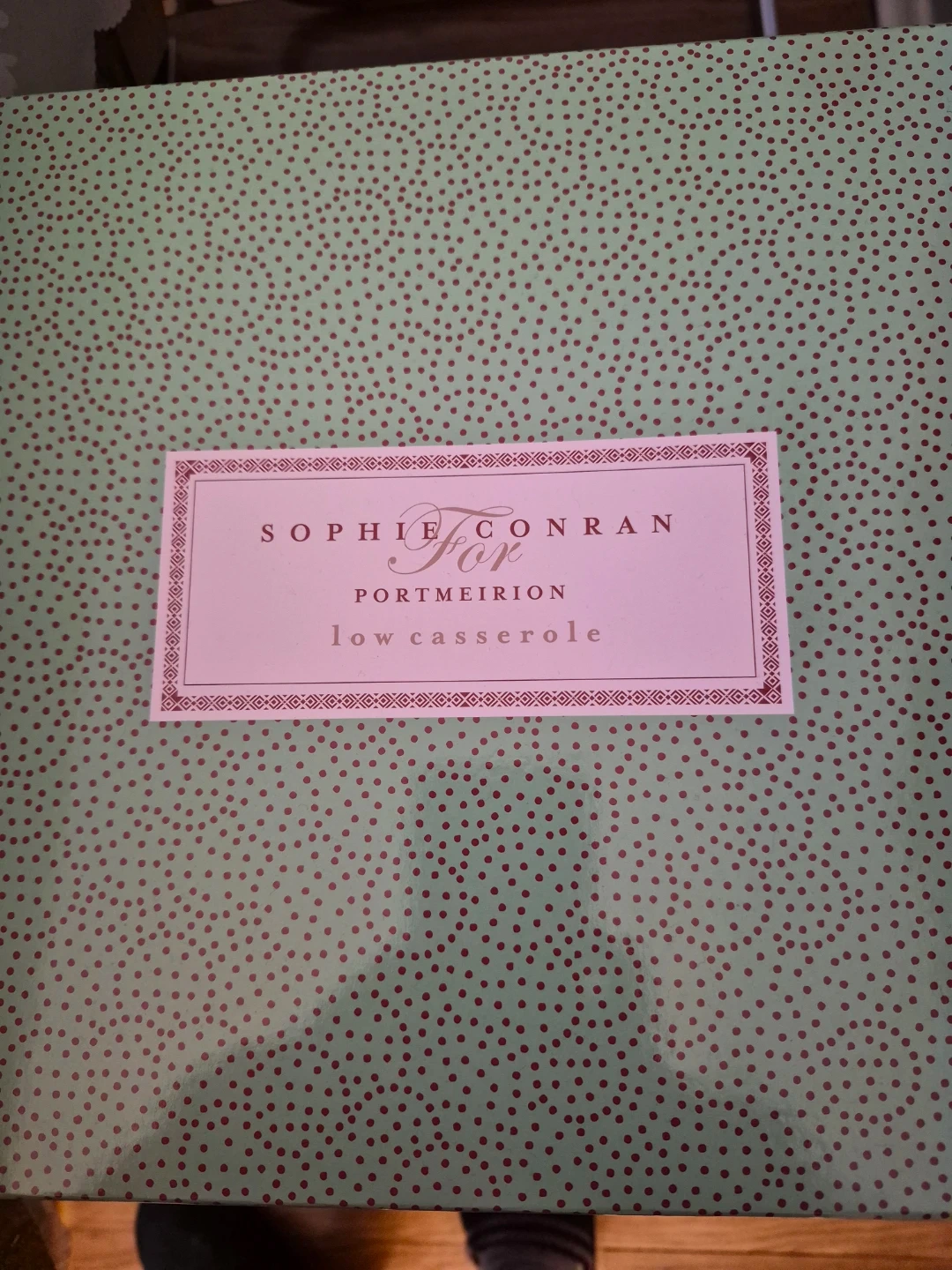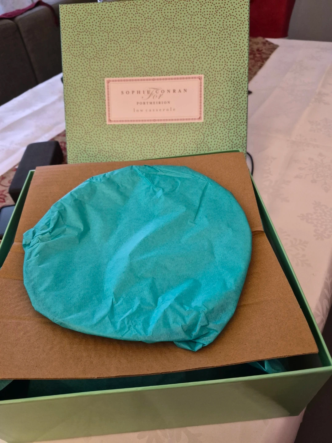 New, never used, low casserole dish. Brand: Sophie Conran For Portmeirion.