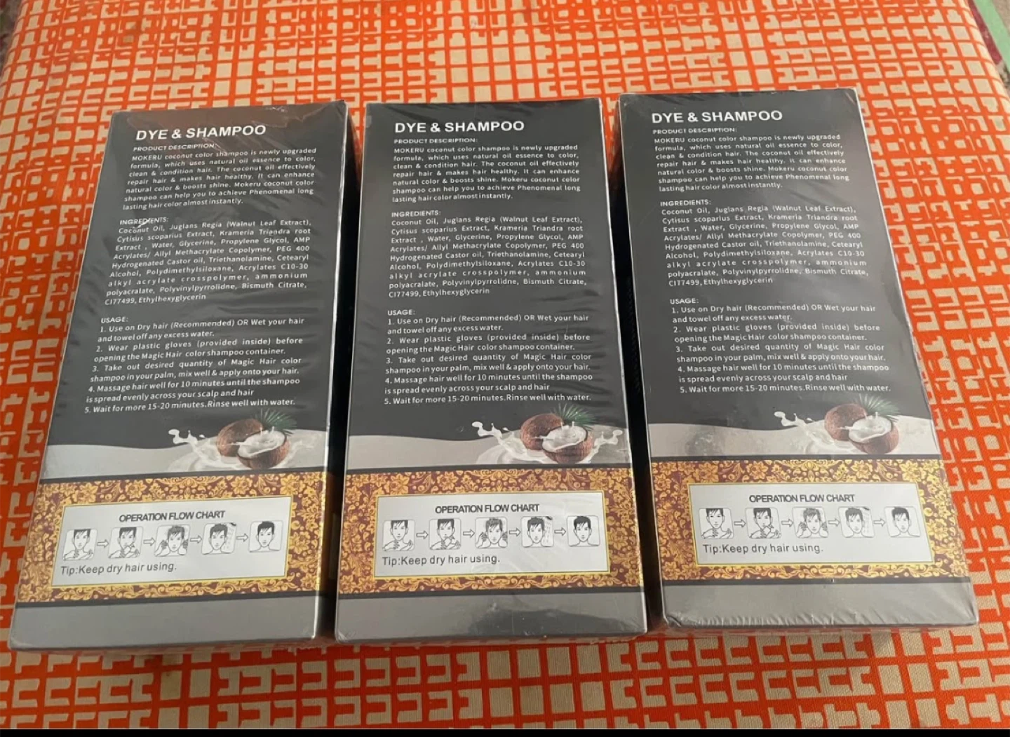 I'm selling three boxes of Mokeru Coconut Dye & Shampoo! It's a powerful and long-lasting permanent hair color, suitable for all hair types. Each box contains 500ml.