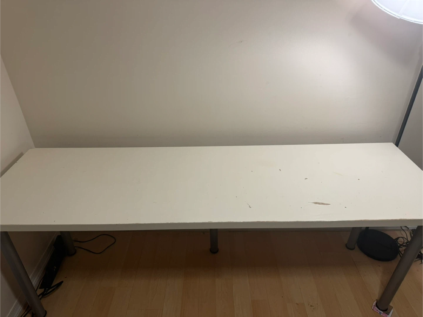 Selling a white desk that's in good condition! It measures approximately 79 cm in width and 59 cm in depth. Perfect for a home office or study space! Delivery for free in Markham and Scarborough
