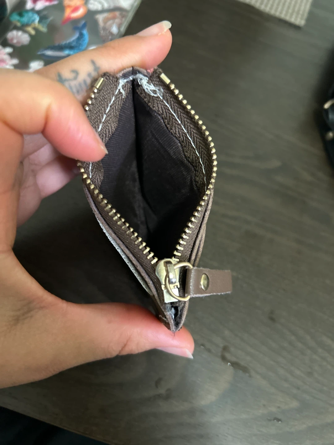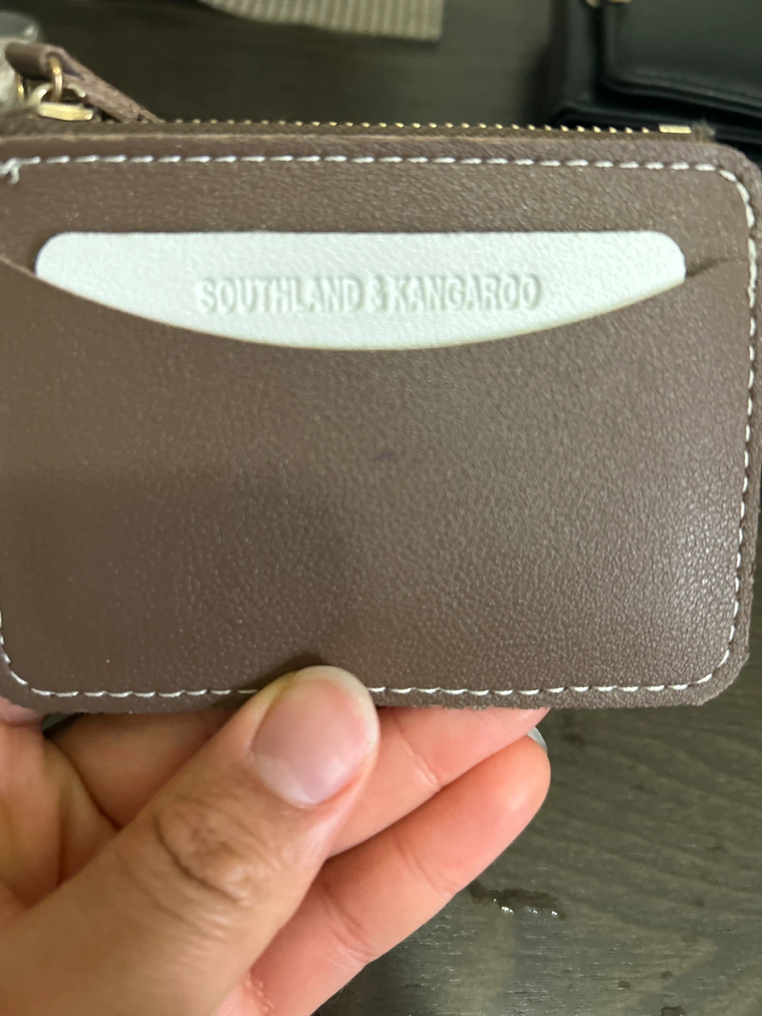 Selling a gently used brown card holder from Southland & Kangaroo. It's in great condition and perfect for holding your essential cards! The color is a versatile brown, and the material feels durable. It has a zippered compartment for change or small items