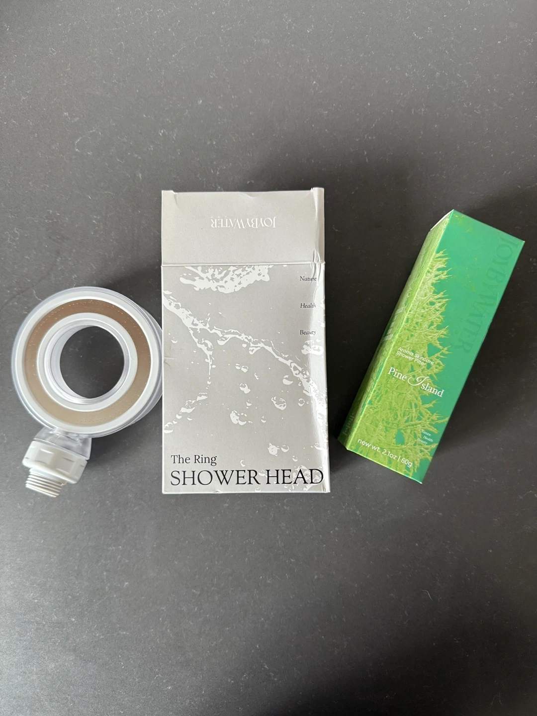 Selling a JoyByWater The Ring Shower Head along with a Pine Island scent scent infusion. It's a great way to upgrade your shower experience with natural scents and a unique shower head design.