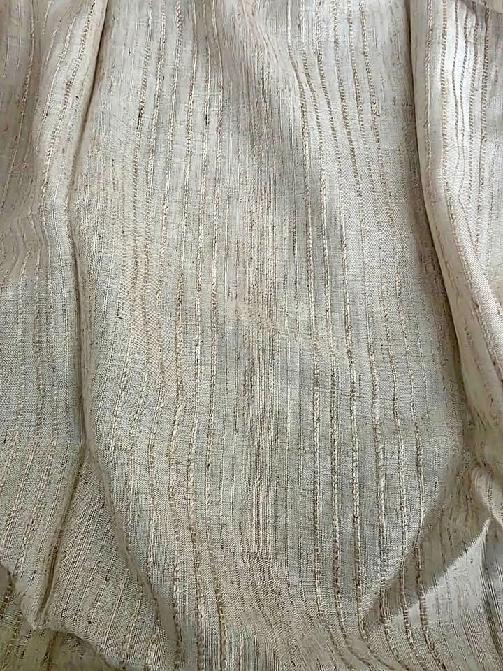 1.5 Meters Striped Linen Look Fabric. 54" wide. Rayon blend with a beige slub stripe. Natural look colour. Hand wash and hang to dry. Smoke/pet free home. Pick up west end of Peterborough near Glenforest and Brealey. Beautiful natural looking Fabric. $10