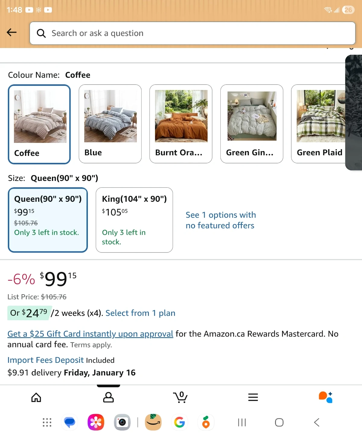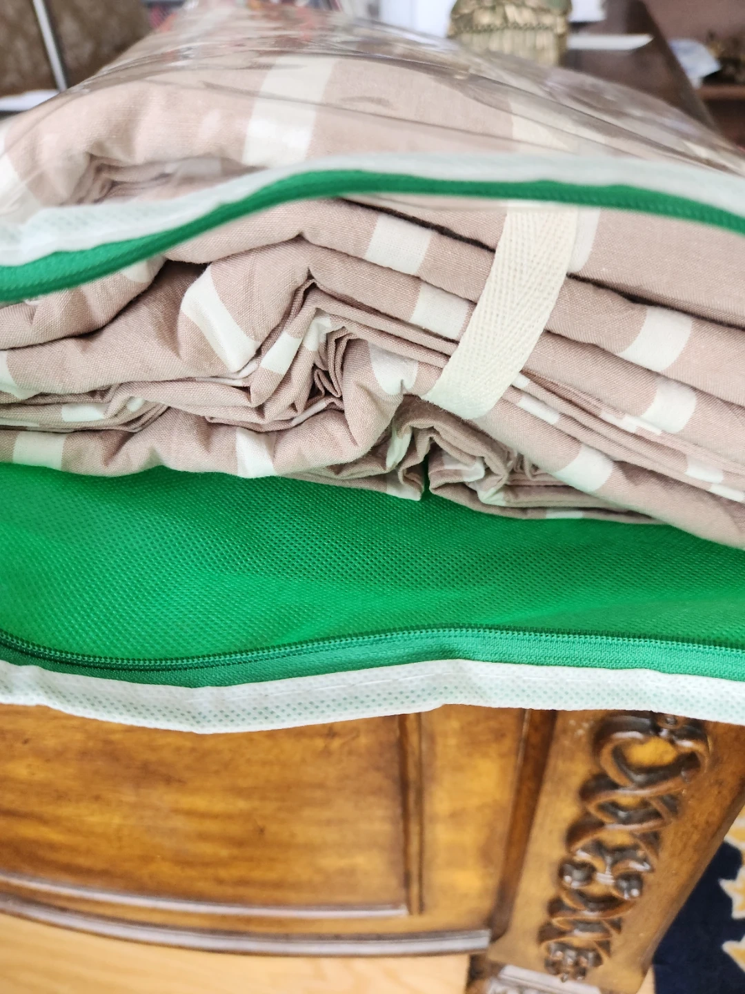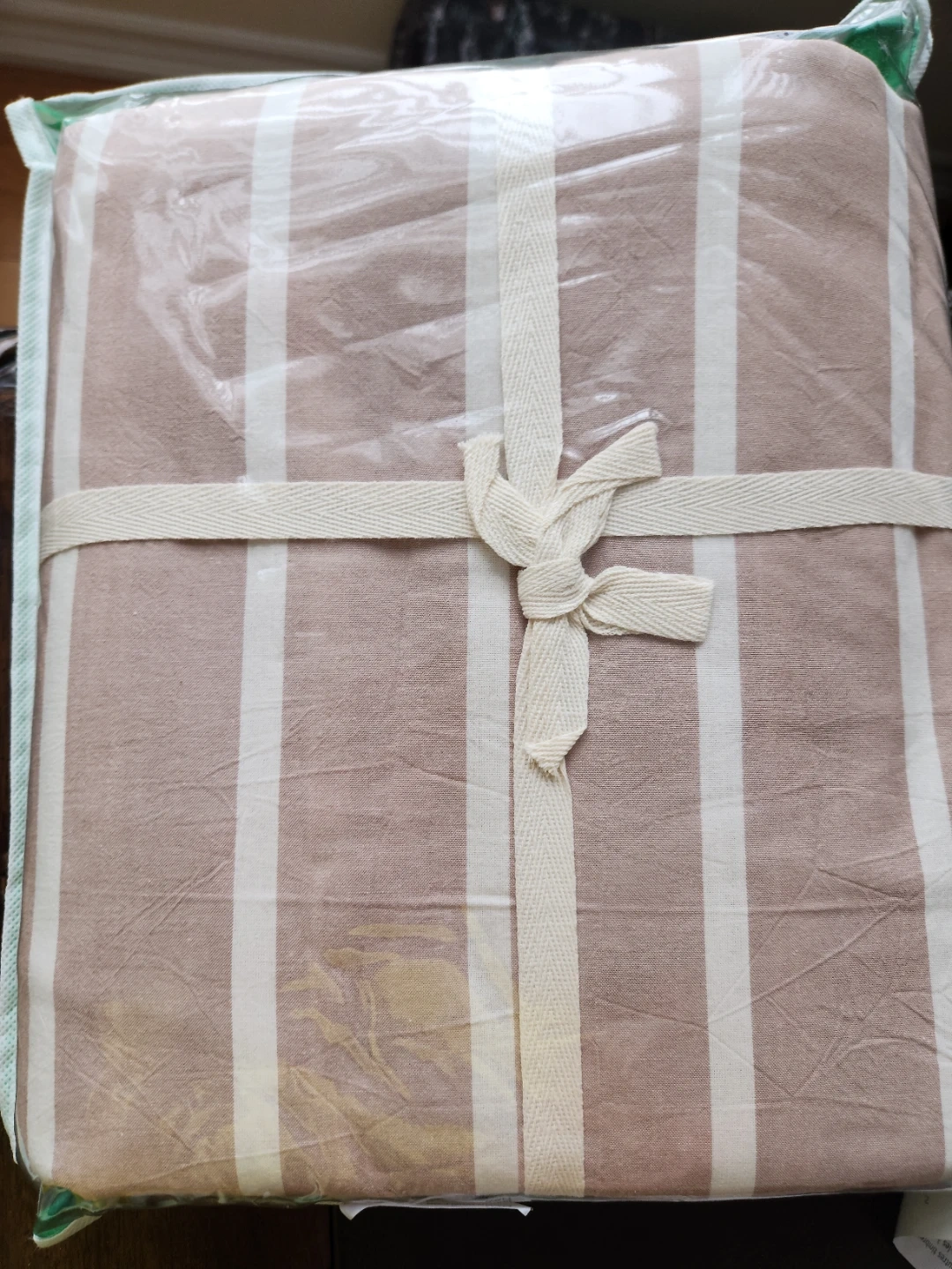 I have a queen size bed duvet set for sale. The colour is coffee with white stripes. It's still in the original packaging. Size is 90" x 90" + 2 pillowcases standart queen size