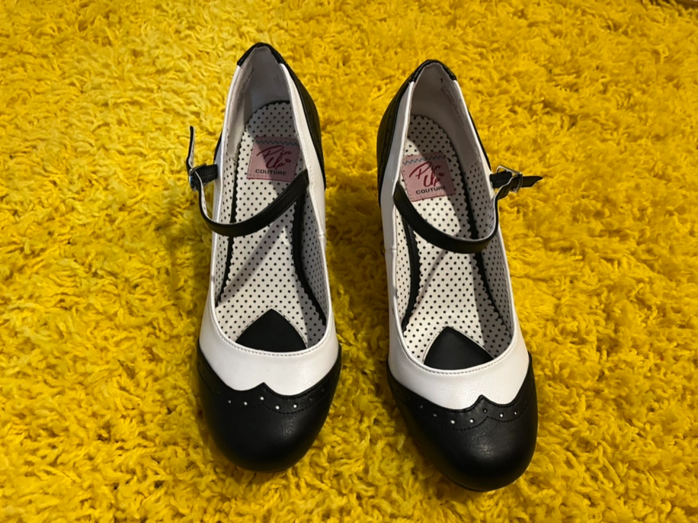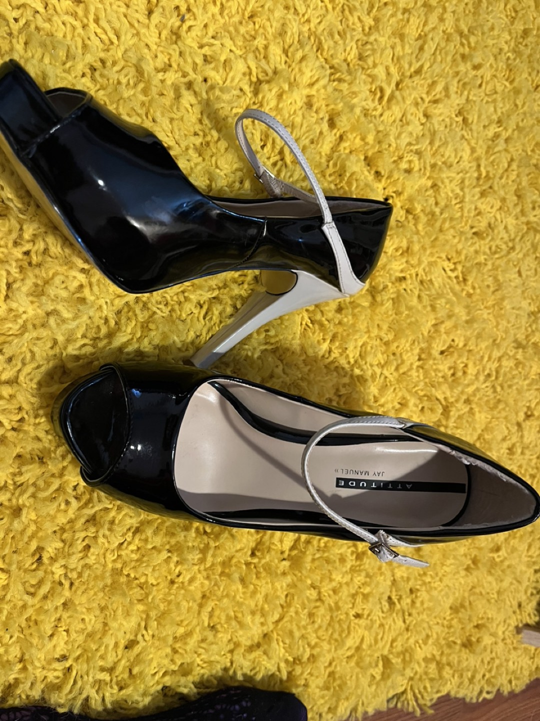 Lovely size 9 pin up style heels only worn a handful of times. I’ve finally given into my achy body and switched to granny shoes. Pick up near Gerrard and coxwell.