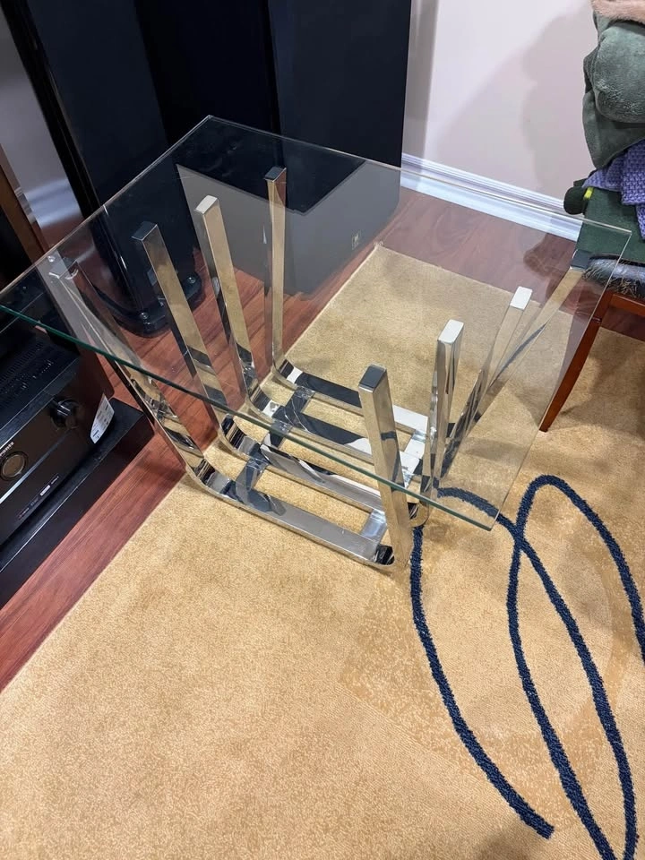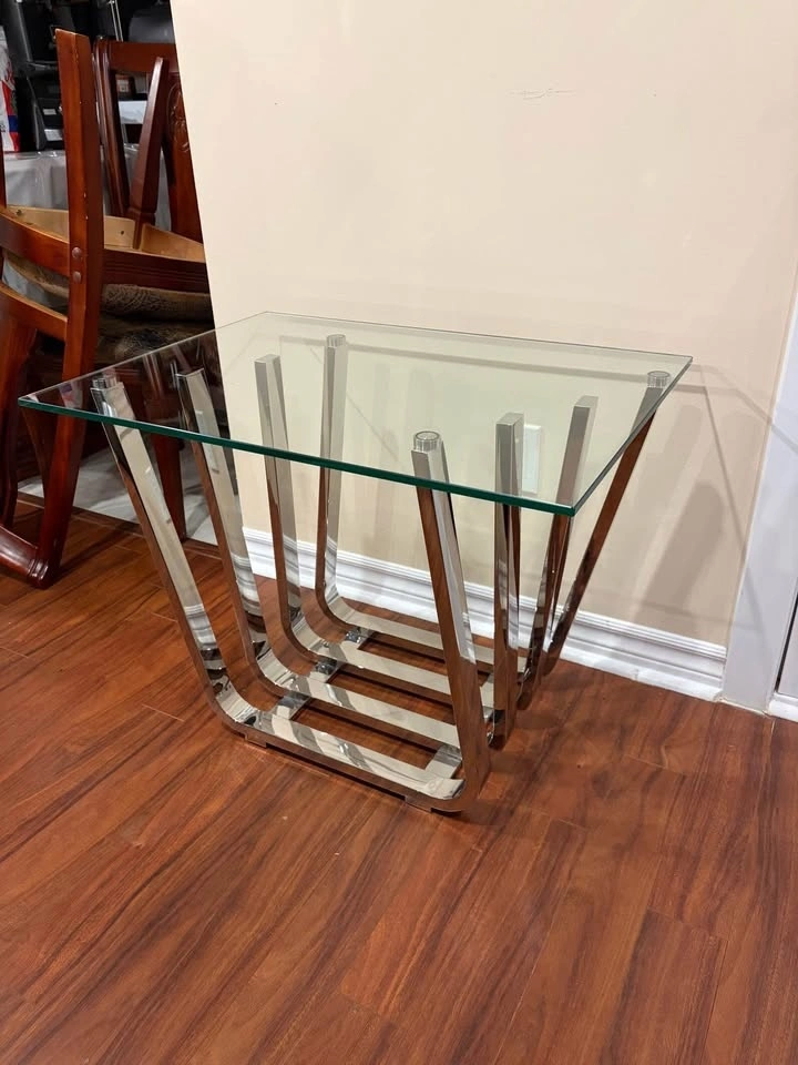 Add a sleek, contemporary touch to your home with these stylish glass and chrome side tables.