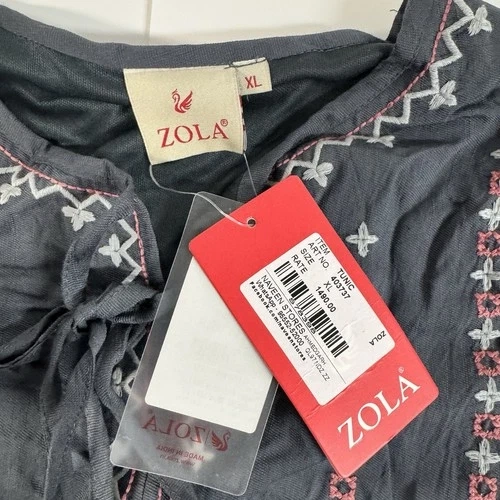 Beautiful embroidered tunic dress by ZOLA, size XL, brand new with tags. Features intricate embroidery on the chest and sleeves, a tie-front neckline, long puff sleeves, and a relaxed, flowy silhouette. Made from soft, breathable cotton. Perfect for casual wear, travel, layering, or everyday comfort.