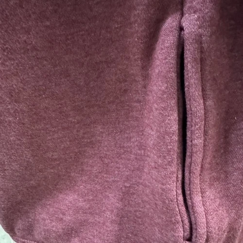 Features a soft fleece interior, two side pockets, and a stylish burgundy/maroon color.