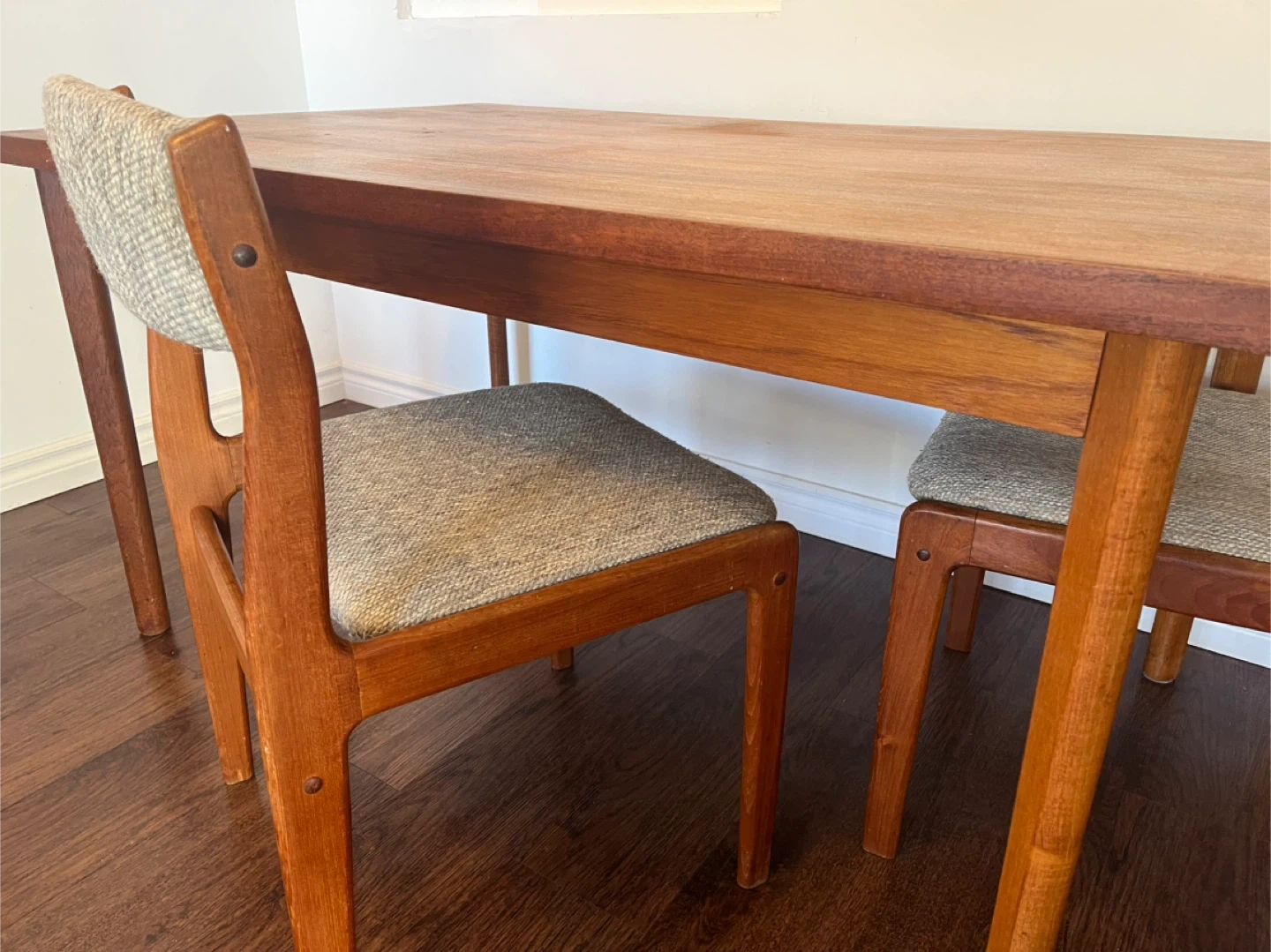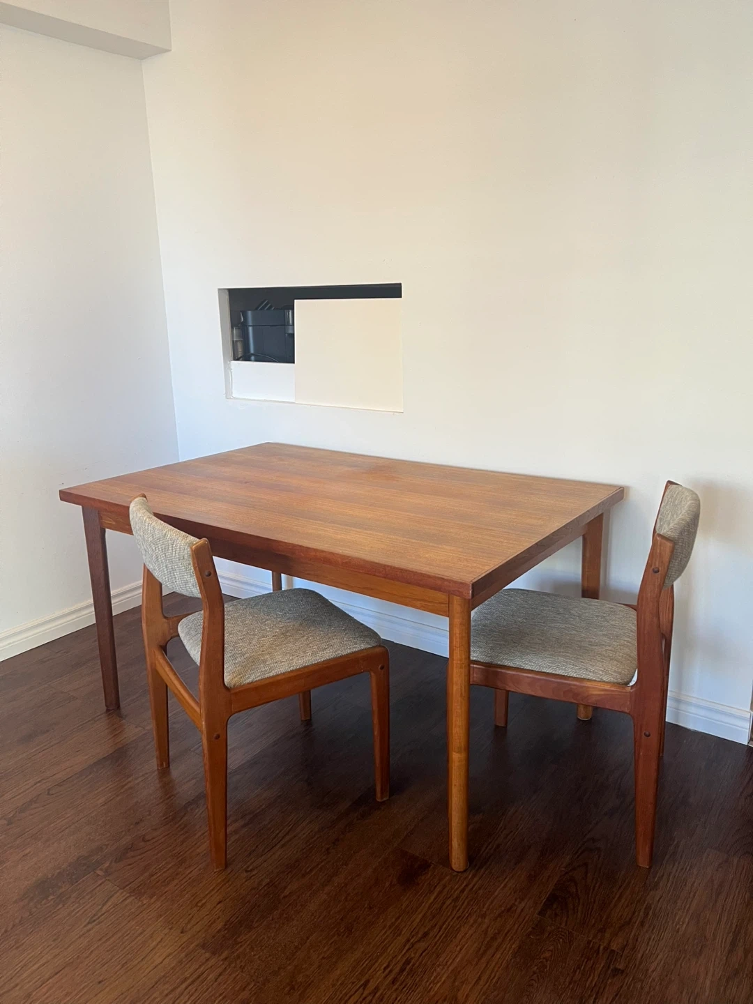 Extendable MCM Dining Table with Two Chairs, Midcentury Modern